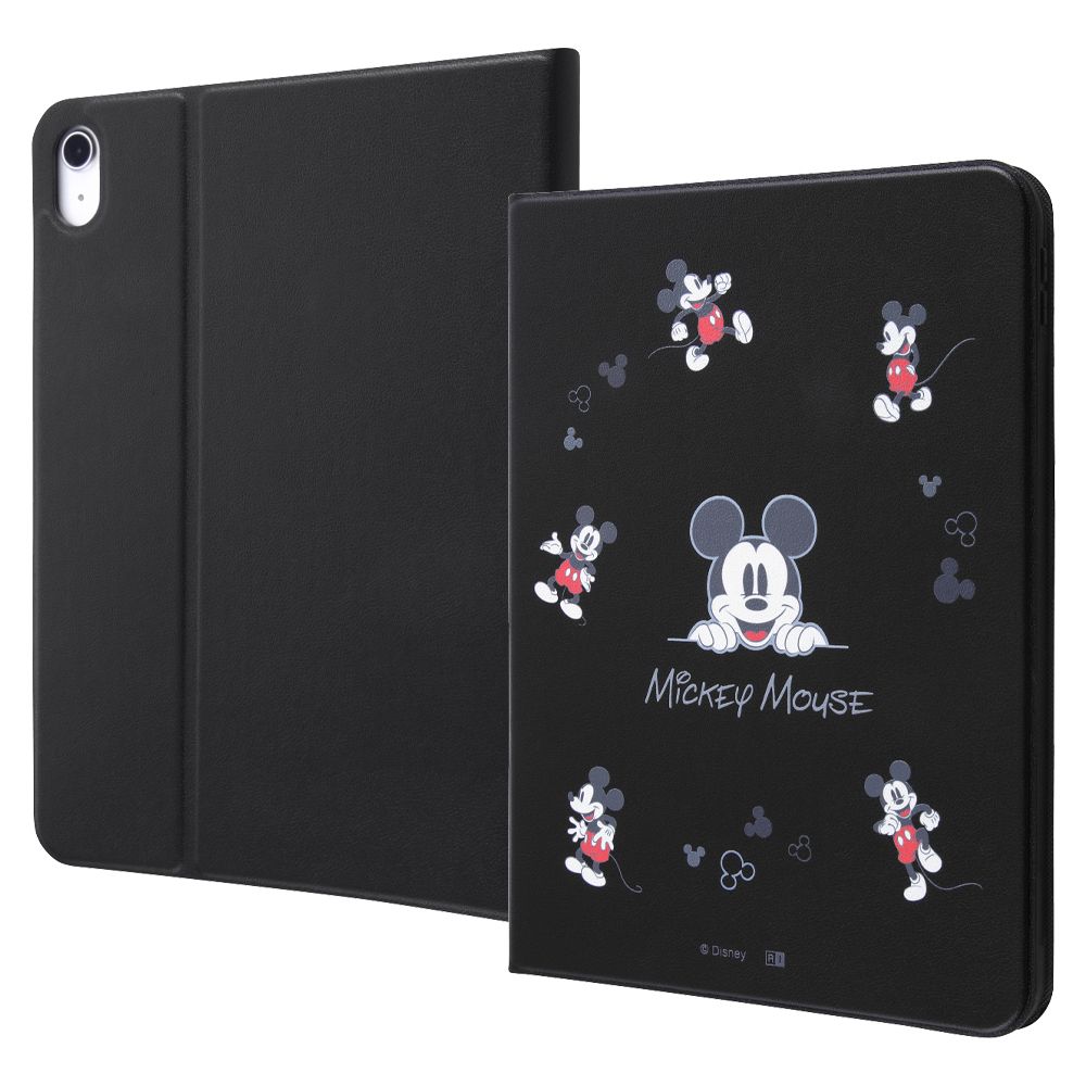 携帯性と使いやすさを兼ね備えた『ディズニーキャラクター』のデザインが印刷された耐衝撃手帳型iPad 2022年モデル 10.9inch(第10世代) 用ケース。3段階の角度調節が可能なスタンド機能付き。オートスリープ対応。キャラクター名: ミッキー ( ミッキーマウス ) 指紋認証対応 Mickey Mouse みっきーまうす ネズミ ねずみ モノクロ 白黒 Walt Disney でぃずにー