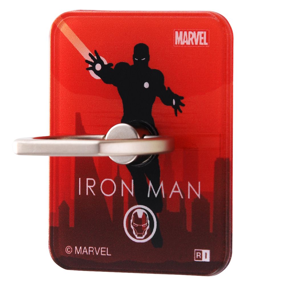 『マーベル』のデザインが施されたスマートフォン用リング。粘着強度が高いのでスマートフォンの操作中の落下を防止します。リングの角度を調整可能なので、縦でも横でも操作可能、スタンド機能としても利用できます。