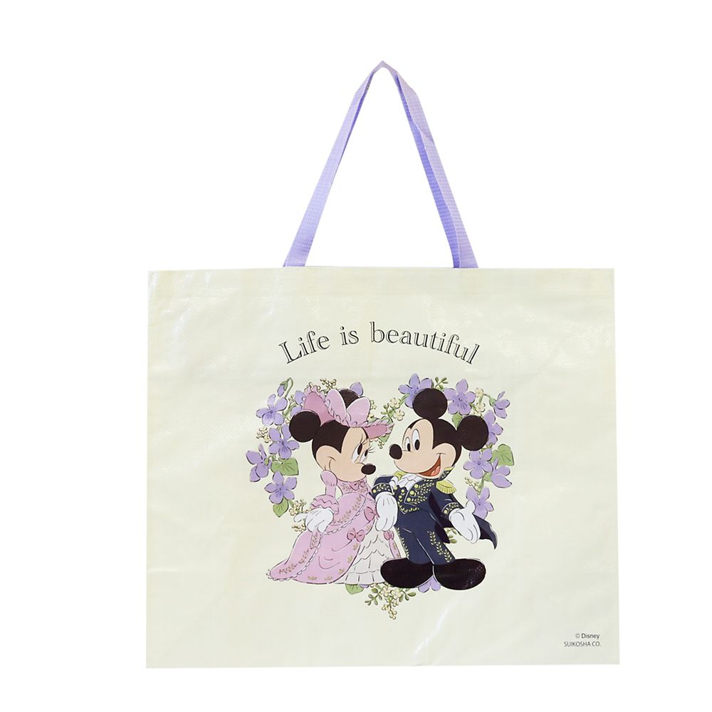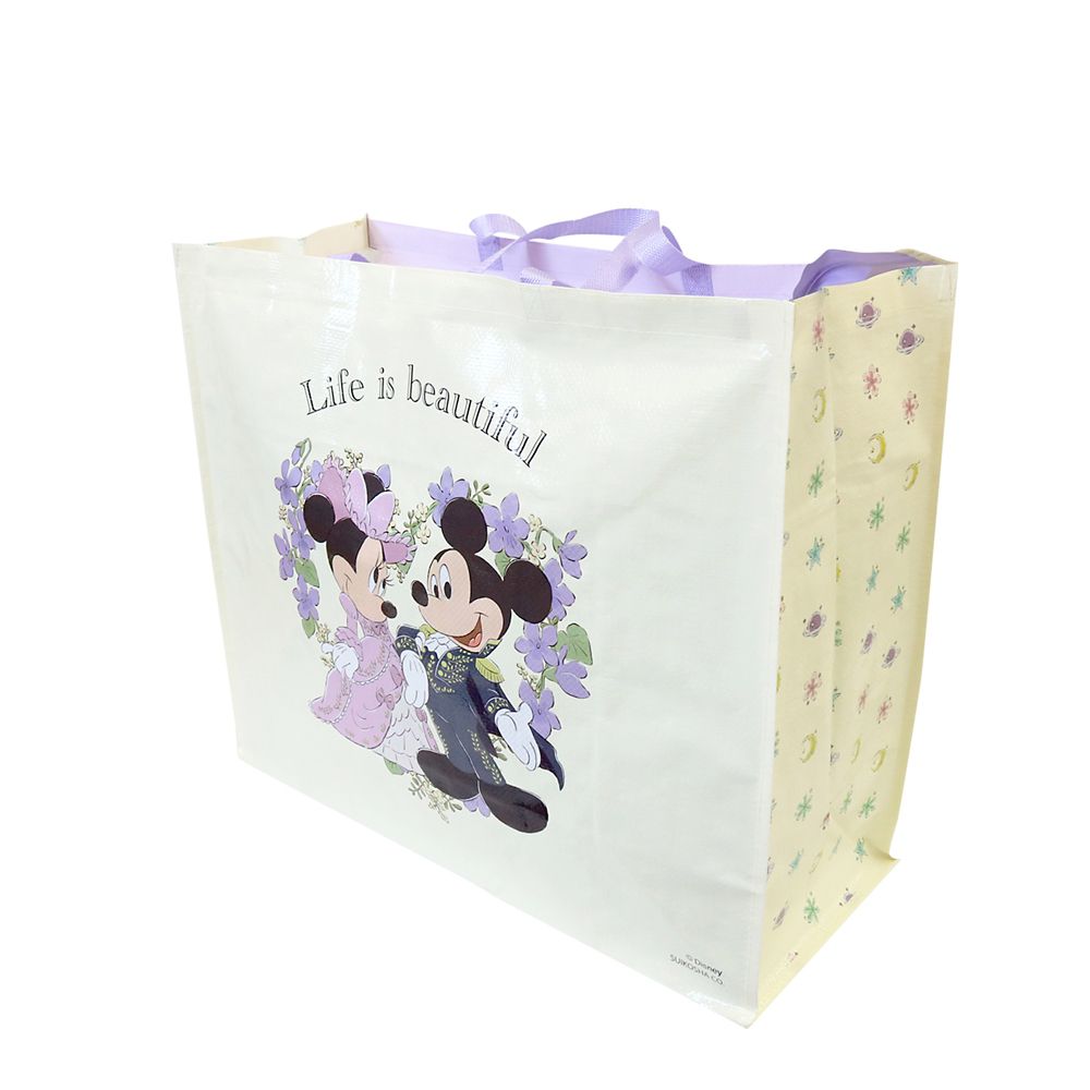 宝塚歌劇オフィシャルショップ キャトルレーヴのディズニーコレクション第二弾。今回のために描き下ろしたオリジナルアートを使用し、特別感のあるデザインを作成しました。荷物やお土産がたっぷり入るワリフバッグは、落ち着いたすみれカラーとすみれの花びらを散りばめ、両サイドには組モチーフ柄を入れた宝塚歌劇らしい印象に仕上げています。