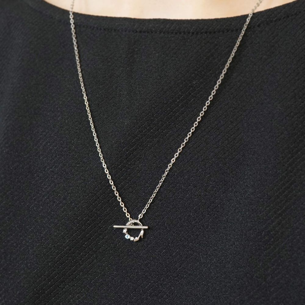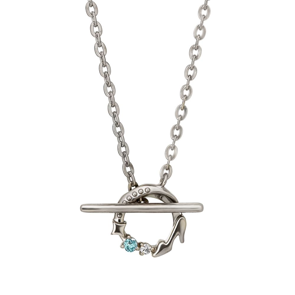ガラスの靴によって再び巡り逢い結ばれる様子をイメージしたネックレスです。<永遠>を意味するサークルの形で全体をデザインしました。キュービックジルコニアでシンデレラの純粋な心と魔法をイメージしています。ブルートパーズ(11月誕生石)で2人が次第に惹かれ合う様子を表現。