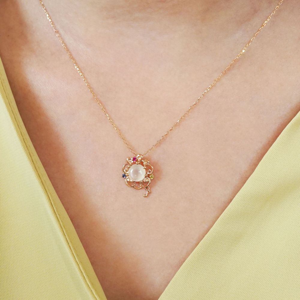 K10ピンクゴールド、ムーンストーン、シンセチックサファイヤ、シンセチックルビー、キュービックジルコニア(イエロー)