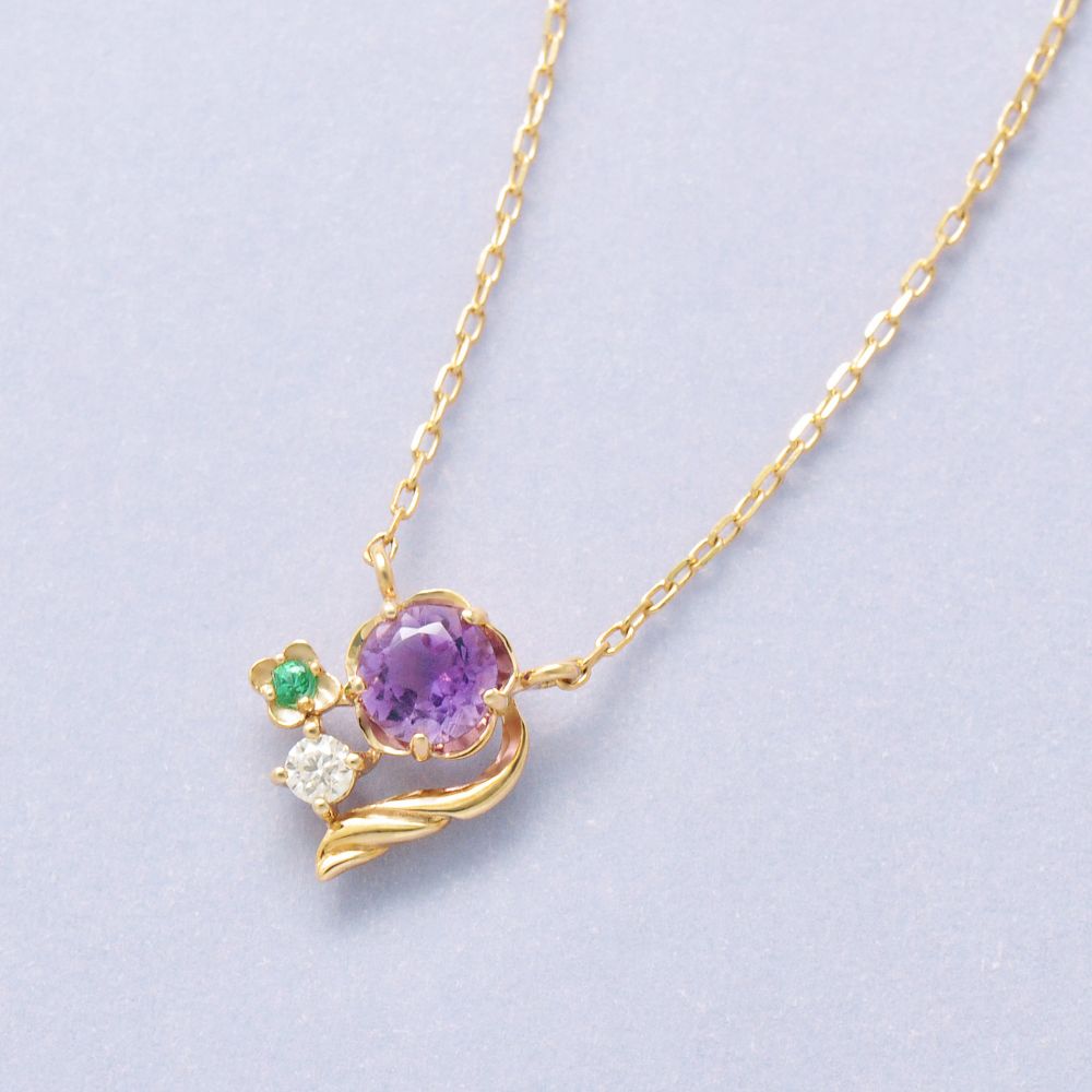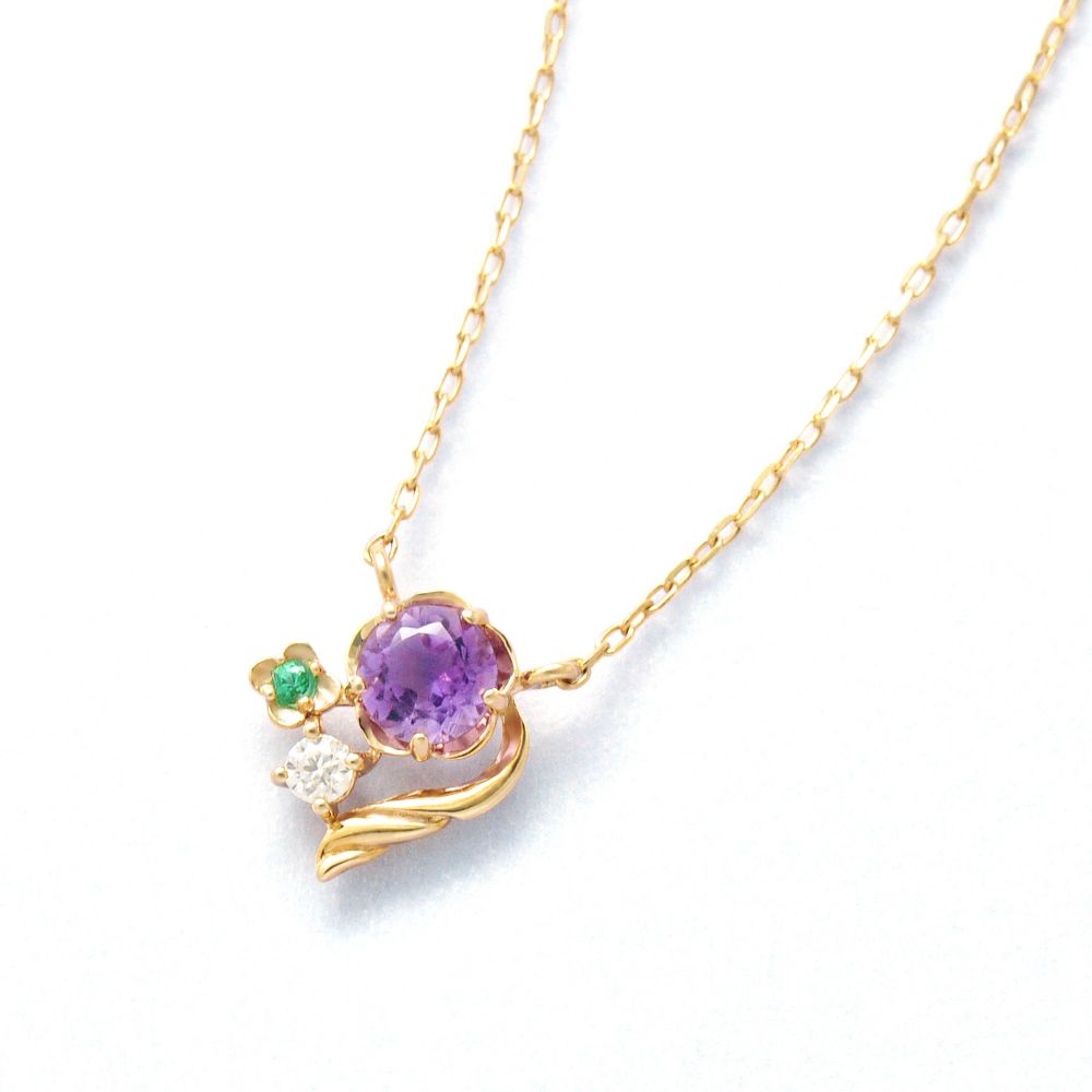 K10イエローゴールド、ライトアメジスト、エメラルド、モアサナイト
