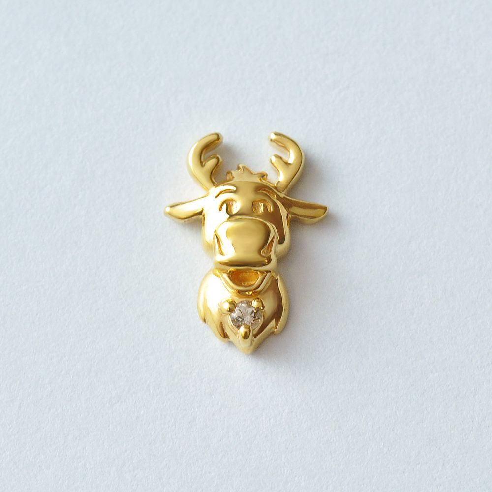 クリストフの相棒の忠実なトナカイ、スヴェンをイメージしたソロピアスです。言葉は話さないがクリストフがスヴェンの気持ちを代弁したり頼れる相棒的存在です。毛並みのカラーをイメージしスモーキークォーツを留めています。立体的なフォルムで鼻や毛並み、角を表現しました。少しおちゃめなスヴェンの表情もポイントです。