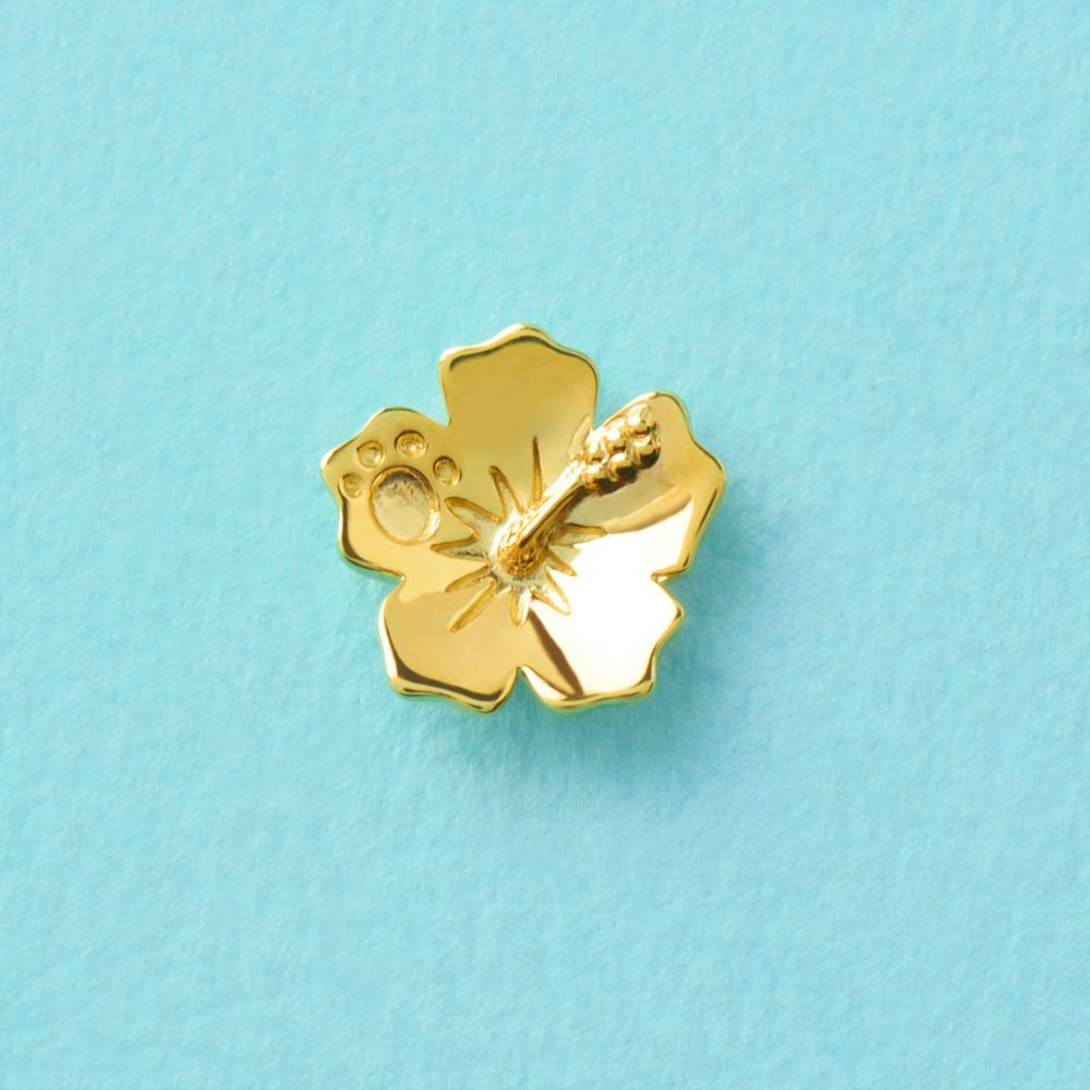 州花にもなっているハワイを代表する花、ハイビスカスのピアス。「信頼」の花言葉を持ち、お互いを信じ、尊重し合う象徴として大切にされているハイビスカスは、ハワイを舞台に大切な人との絆を描いたリロ&スティッチにぴったりのモチーフです。ふんわりとしたボリュームで凛々しく上品に咲くハイビスカスの姿を立体的に作り上げ、花びらの一枚にはスティッチの足跡を刻印しました。いたずらなスティッチの姿をさり気なく感じられるピアスです。