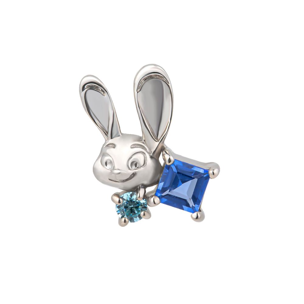 ズートピアの主人公であり、困難に立ち向かいながら夢を追い続けるジュディをイメージしたピアス。真面目で正義感に溢れるイメージからメインにスクエアのブルークォーツを留め、警察官の制服のカラーに仕上げています。ニックのピアスと石のシェイプをリンクさせているので、左右ペアにしたりパートナーとのリンクコーデを楽しむこともできます。