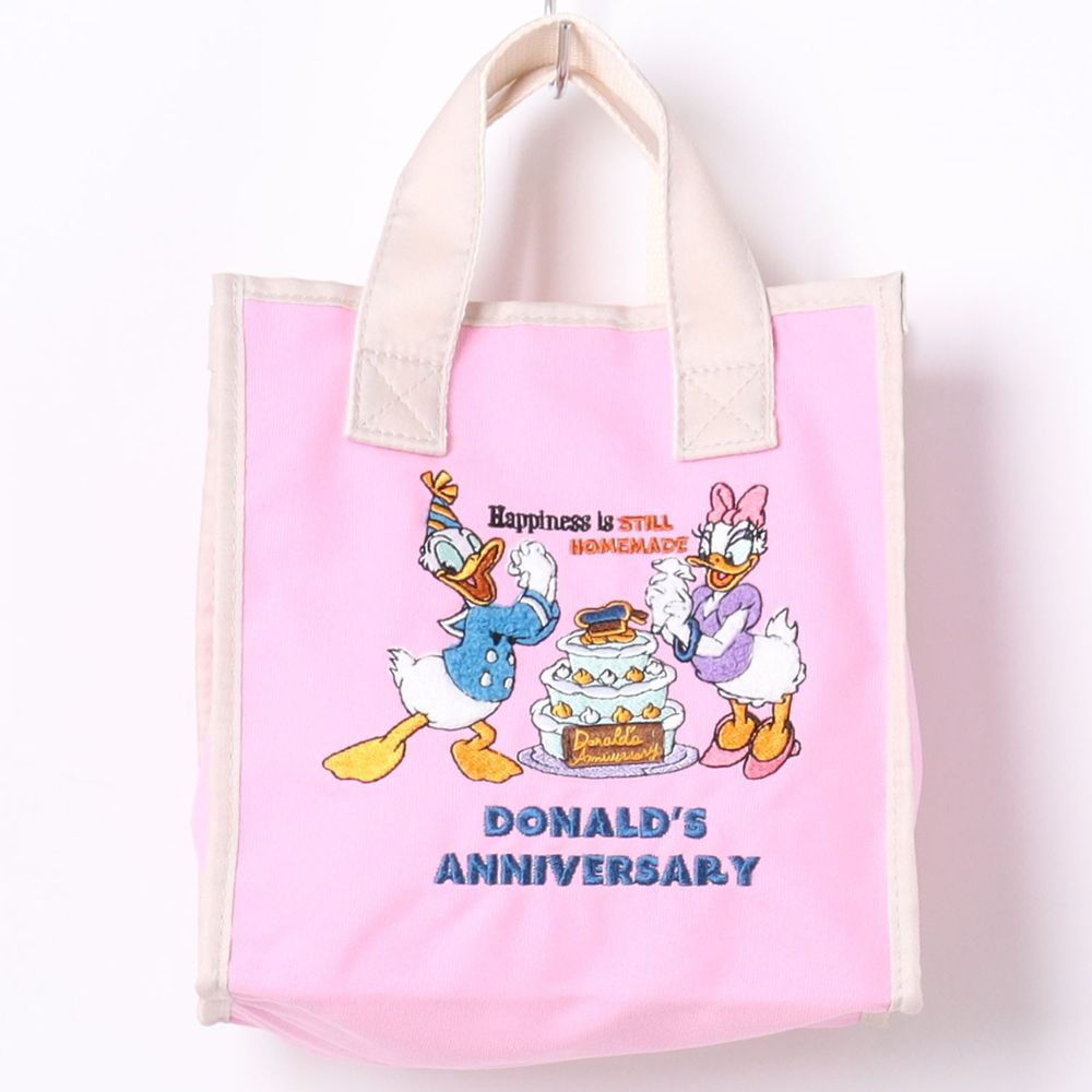 キャラクターが刺繍でデザインされたキャンバス地のミニトートバッグ