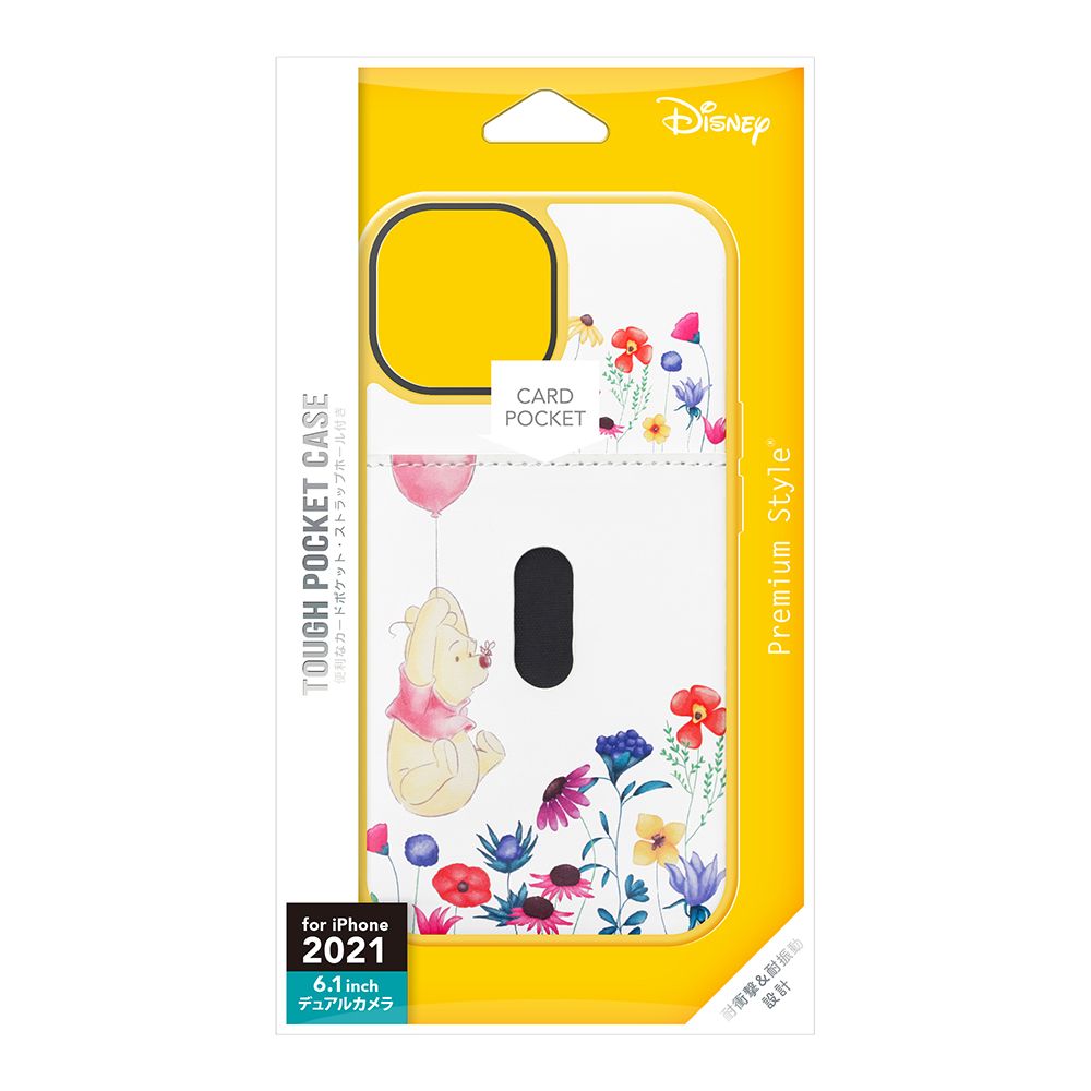 「PG-DPT21K06POO」は、ディズニーキャラクターデザインの2021年 iPhone 13用タフポケットケースです。MIL規格(MIL-STD-810G)の2項目、落下・振動に準拠した試験をクリアした、耐衝撃&耐振動設計。背面には通勤・通学やお買い物に便利なカードが1枚収納できるポケット付き。側面のボタンもTPU素材にてしっかり保護。お手持ちのストラップを付けて落下を防止できるストラップホール付き。