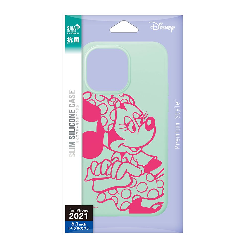 「PG-DSC21N02MNE」は、ディズニーキャラクターデザインの軽量スリム設計の型崩れしにくいiPhone 13 Pro用 抗菌スリムシリコンケースです。ケース外側は衝撃を緩衝するシリコン素材。菌の繁殖を抑えるSIAA(抗菌製品技術協議会)規格準拠の抗菌加工が施され端末本体を細菌から守り、清潔に保ちます。また、シリコン特有のベタつきを抑え肌ざわりのよいさらさらとした手に馴染みやすい加工を施しています。ベースにはポリカーボネイトを使用し型崩れを防止することで長期間使用しても端末本体にしっかり密着します。