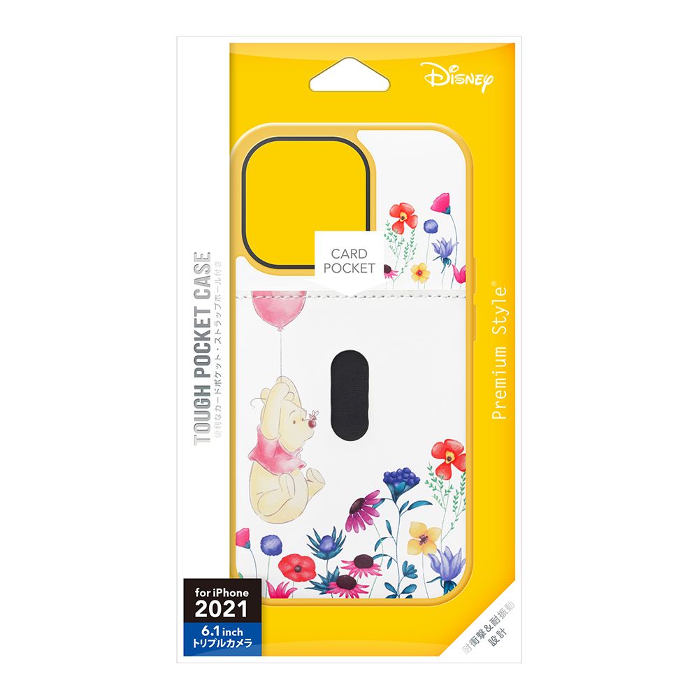 「PG-DPT21N06POO」は、ディズニーキャラクターデザインのiPhone 13 Pro用タフポケットケースです。MIL規格(MIL-STD-810G)の2項目、落下・振動に準拠した試験をクリアした、耐衝撃&耐振動設計。背面には通勤・通学やお買い物に便利なカードが1枚収納できるポケット付き。側面のボタンもTPU素材にてしっかり保護。お手持ちのストラップを付けて落下を防止できるストラップホール付き。