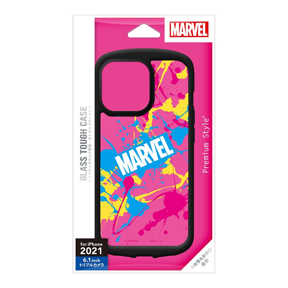 「PG-DGT21N20MVL」は、「MARVEL」デザインのiPhone本体の色を生かせるクリア仕様のiPhone 13 Pro用のガラスタフケースです。背面にシールや写真を入れて自分好みにカスタマイズすることもできます。MIL規格(MIL-STD-810G)の2項目、落下・振動に準拠した試験をクリアした、耐衝撃&耐振動設計。サイド部分はやわらかく丈夫なTPU素材でボタン周りもしっかり保護、着脱も簡単です。ガラスが万一割れてしまっても、安全な飛散防止加工済み。お手持ちのストラップをつけて落下を防げるストラップホール付き。