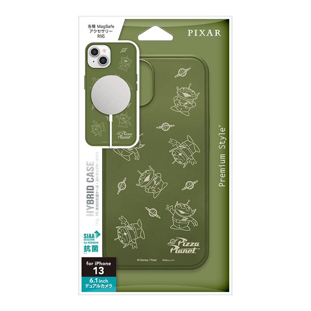 「PG-DMGPT21K04LGM」は、ピクサーキャラクターデザインの各種MagSafeアクセサリーに対応したiPhone 13用 抗菌ハイブリッドケースです。マグネットリング搭載でMagSafeアクセサリーをピタッと簡単装着。耐久性のあるポリカーボネイトとしなやかなTPUを組み合わせたハイブリッド設計で端末本体をしっかり保護します。菌の繁殖を抑えるSIAA(抗菌製品技術協議会)規格準拠の抗菌加工が施され端末本体を細菌から守り、清潔に保ちます。お手持ちのストラップを付けて落下を防止できるストラップホール付き。