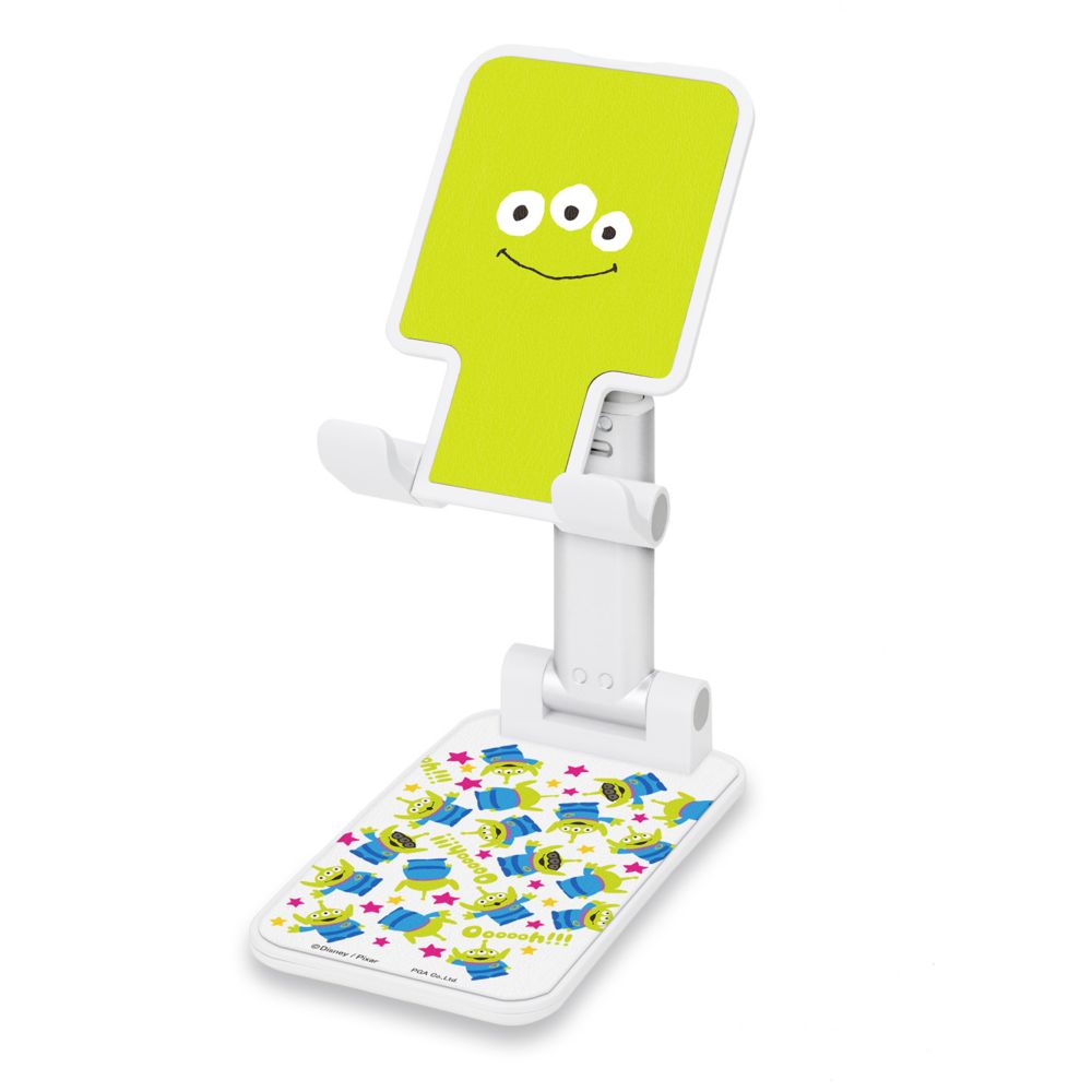 「PG-DSTD02LGM」は、ピクサーキャラクターデザインの持ち運びにも便利な折りたたみタイプのスマートフォン用 スタンドです。スタンドの高さや角度の調整が可能で、アーム部は約40mmまで伸縮します。動画視聴やリモート会議などの様々なシーンでお使い頂けます。コンパクトに折りたためる為、持ち運びにも便利です。端末を設置する部分は、風合いの良い上質な合皮素材の為、端末を優しく支えます。端末をスタンドに乗せた状態で充電ケーブルを接続することが出来るので、動画視聴やリモート会議などの長時間使用する場合も最適です。