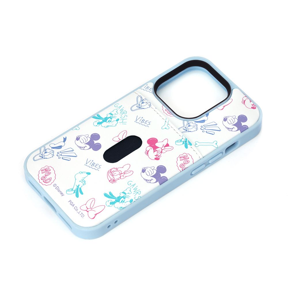 「PG-DPT22Q16MKY」は、ディズニーキャラクターデザインのiPhone 14 Pro用タフポケットケースです。MIL規格(MIL-STD-810G)の2項目、落下・振動に準拠した試験をクリアした、耐衝撃&耐振動設計。背面には通勤・通学やお買い物に便利なカードが1枚収納できるポケット付き。側面のボタンもTPU素材にてしっかり保護。お手持ちのストラップを付けて落下を防止できるストラップホール付き。