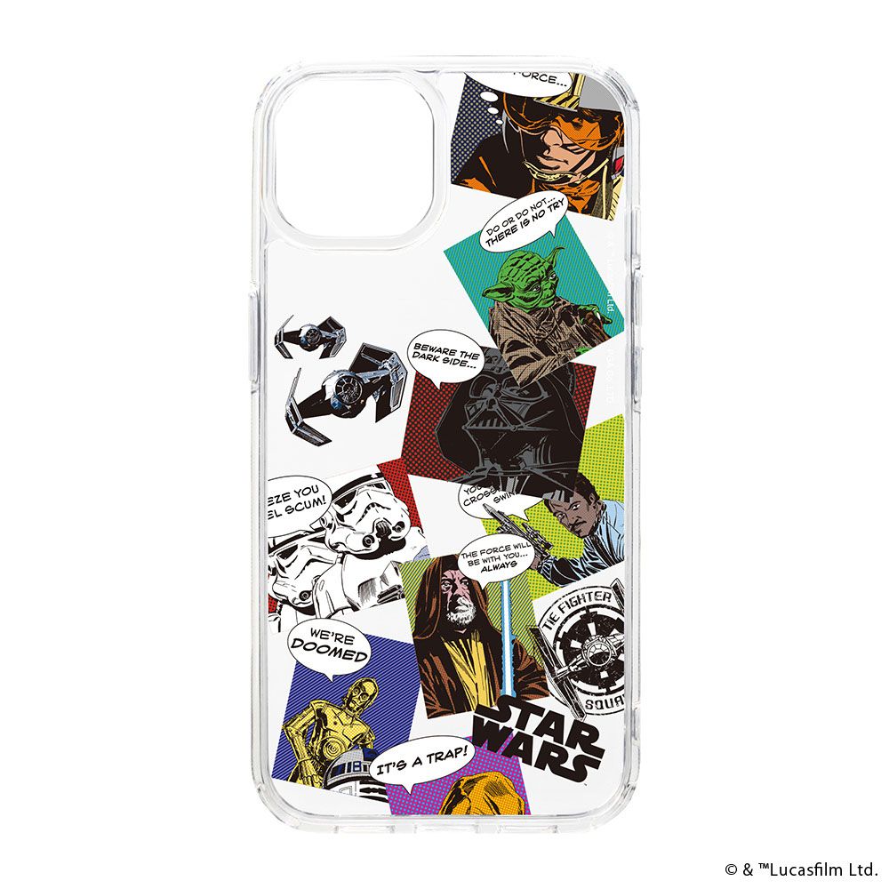 「PG-D23APT31SW」は、「STAR WARS」デザインの iPhone15 用 クリアハイブリッドケースです。クリアデザインでiPhone本体の美しさを最大限に活かします。耐久性のあるポリカーボネイトとしなやかなTPUを組み合わせたハイブリッド設計で端末本体をしっかり保護します。お手持ちのストラップを付けて落下を防止できるストラップホール付き。