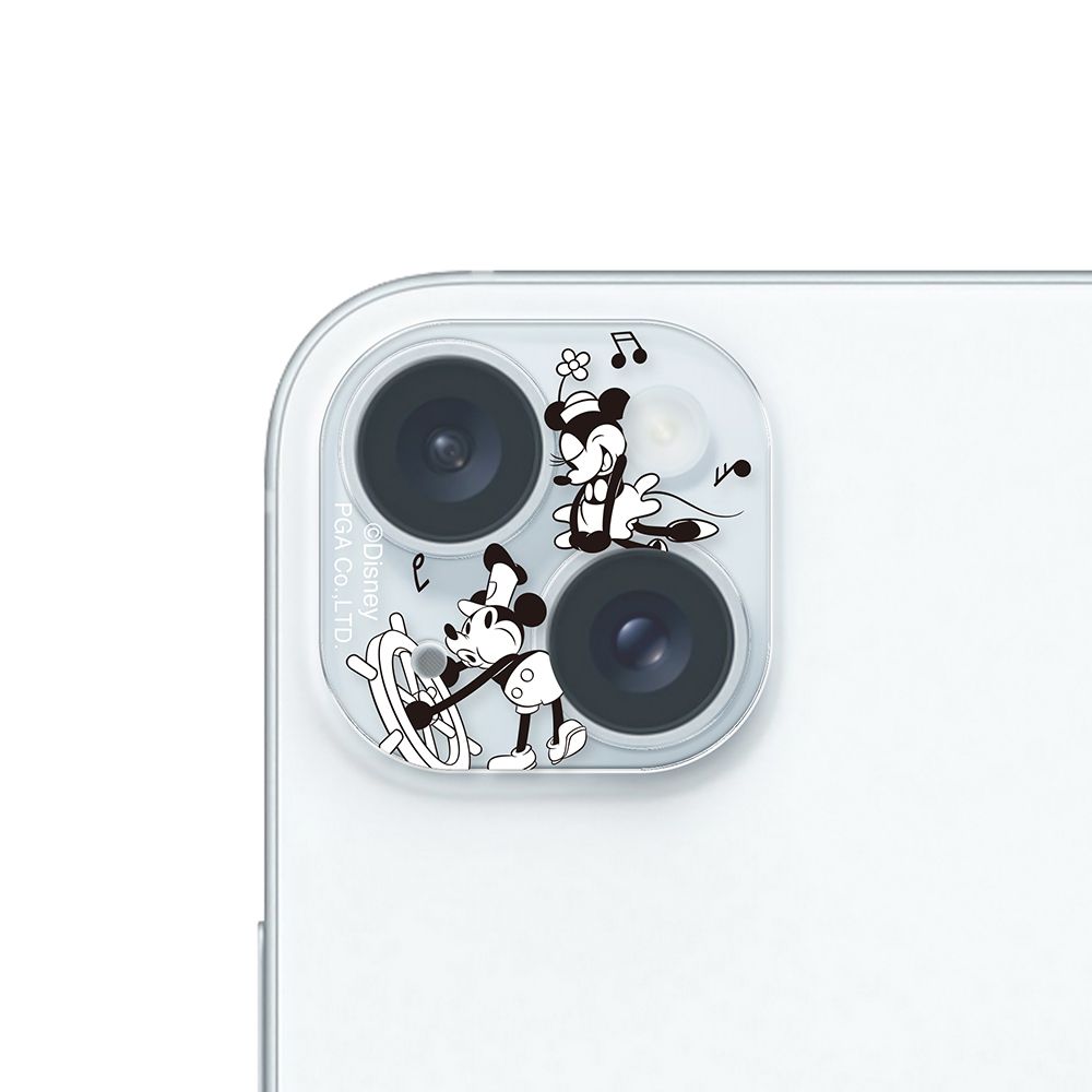 「PG-D23ACLG01MKY」は、ディズニーキャラクターデザインのiPhone 15/15 Plus/14/14 Plus用カメラフルプロテクターです。本体カラーを活かすクリア仕様。表面硬度10H光沢ガラスと耐候性に優れたアクリル素材で一体成形されており、端末本体のカメラレンズ周りからLEDライト部までキズを付けず、美しくカメラレンズ守ります。