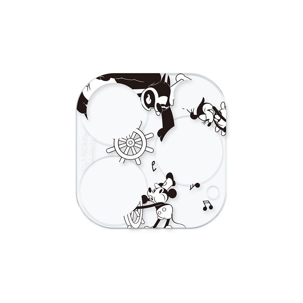 「PG-D23BCLG01MKY」は、ディズニーキャラクターデザインのiPhone 15 Pro/15 Pro Max用カメラフルプロテクターです。本体カラーを活かすクリア仕様。表面硬度10H光沢ガラスと耐候性に優れたアクリル素材で一体成形されており、端末本体のカメラレンズ周りからLEDライト部までキズを付けず、美しくカメラレンズ守ります。