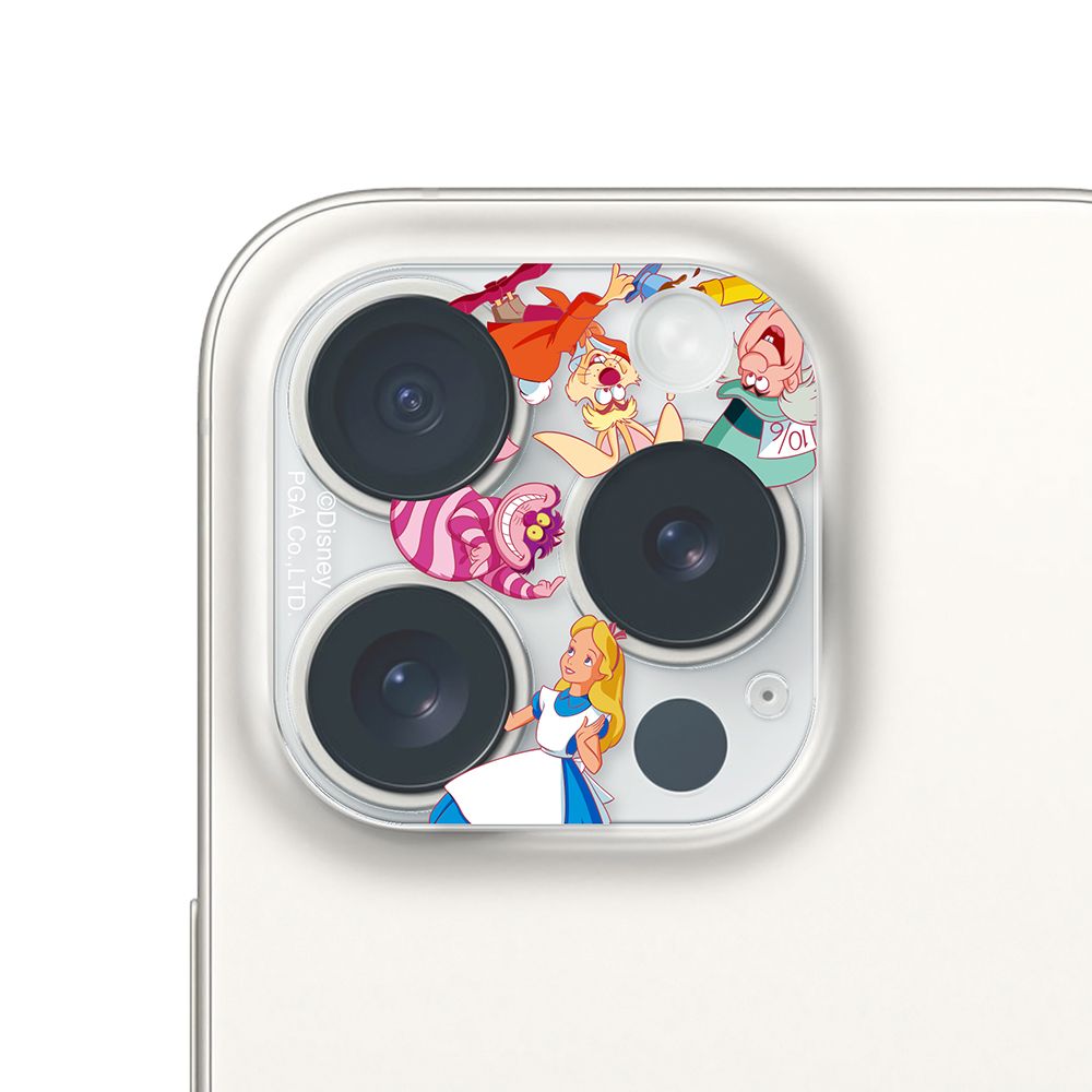 「PG-D23BCLG03ALC」は、ディズニーキャラクターデザインのiPhone 15 Pro/15 Pro Max用カメラフルプロテクターです。本体カラーを活かすクリア仕様。表面硬度10H光沢ガラスと耐候性に優れたアクリル素材で一体成形されており、端末本体のカメラレンズ周りからLEDライト部までキズを付けず、美しくカメラレンズ守ります。
