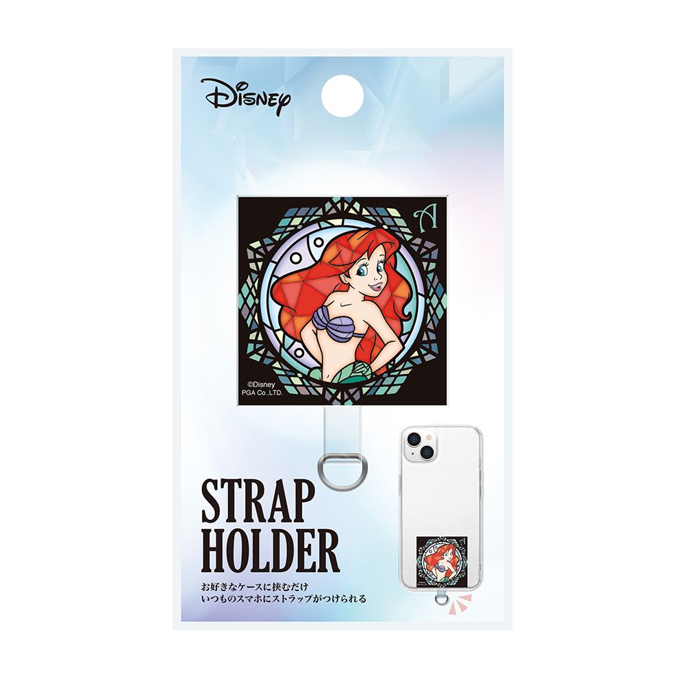 「PG-DSTHLD12ARL」は、ディズニーキャラクターがステンドグラス調で色鮮やかにデザインされたストラップホルダーです。端末とケースの間にストラップホルダーを挟み込むだけで、ストラップホールを付加します。(※お手持ちのケースや充電口の形状によってはホルダーが収まらない場合があります。)端末やケースに貼り付けしないので、汚れずいつでも付け外しが可能です。(耐荷重:3kg)
