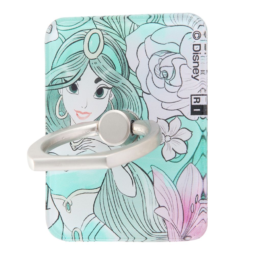 『ジャスミン』のデザインが施されたスマートフォン用リング。吸着強度が強いのでスマートフォンの操作中の落下を防止します。リングの角度を調整可能なので、縦でも横でも操作可能、スタンド機能としても利用できます。キャラクター名: ジャスミン※本製品に端末本体は付属致しません。