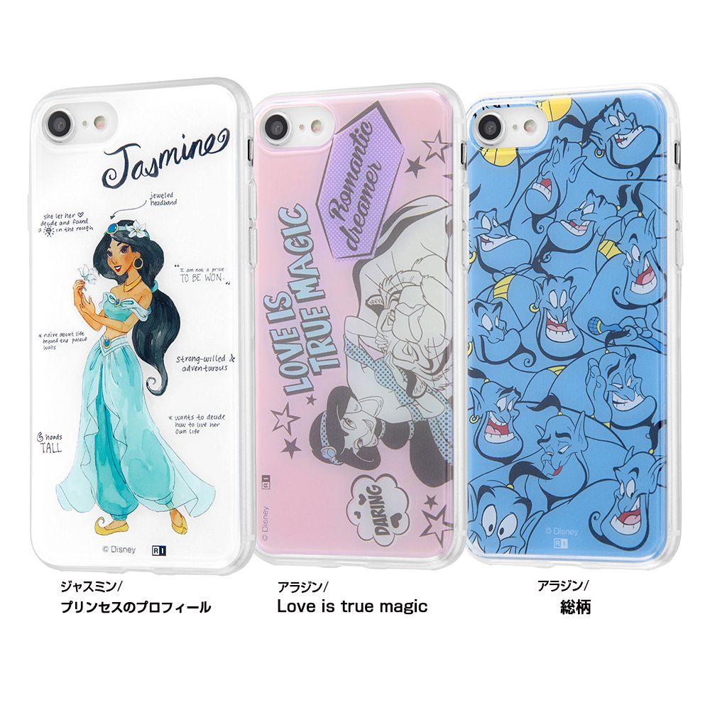 しなやかで柔軟性があり、衝撃に強く透明度の高いTPU素材に、薄くて軽いポリカーボネート素材の背面パネルをセットにした衝撃に強いiPhone 8 / 7用ケース。背面パネルは『アラジン』のデザインが印刷され、端末の背面を個性的に魅せることができます。背面パネルは季節や気分に合わせて着せ替えすることもできます。キャラクター名: ジャスミン / ラジャー