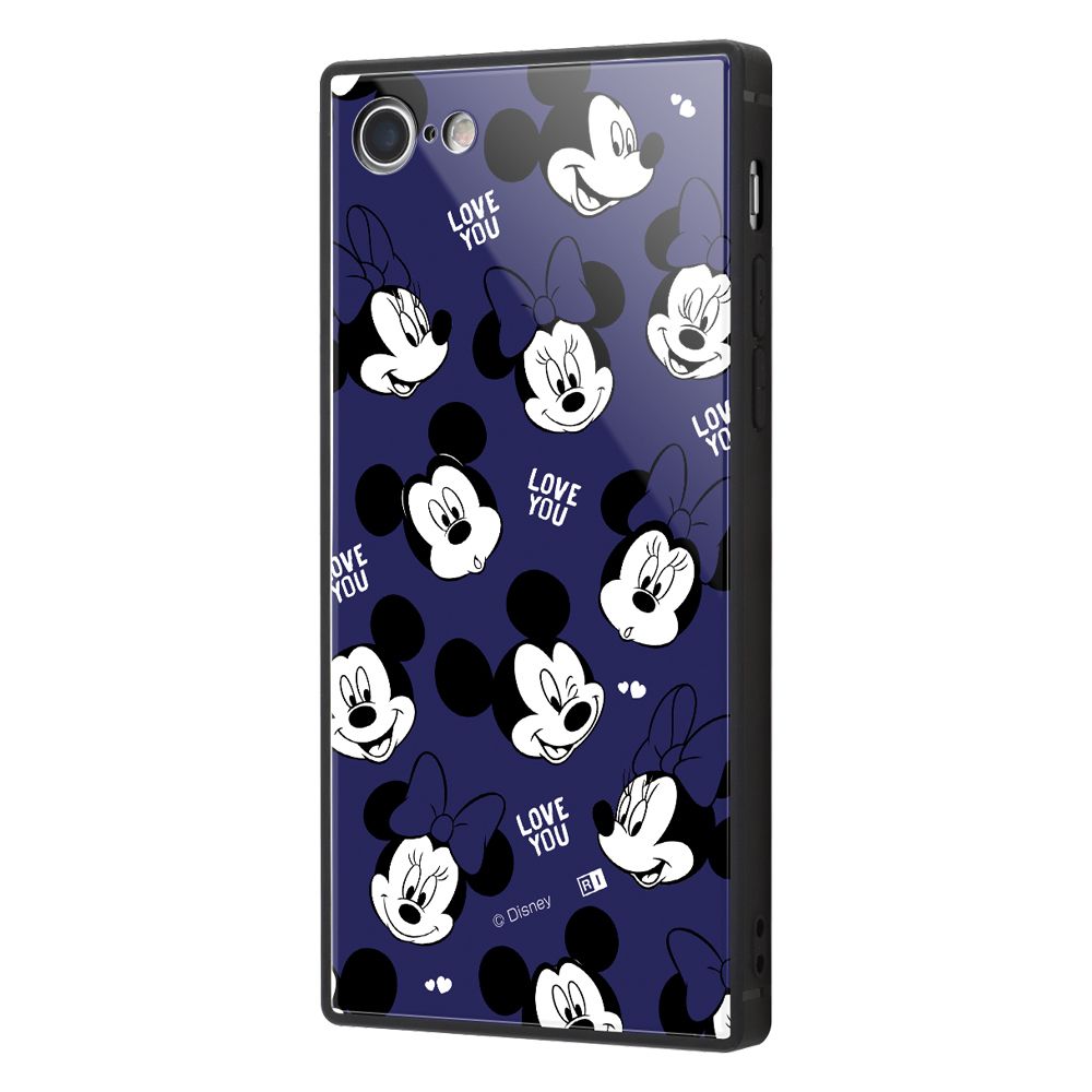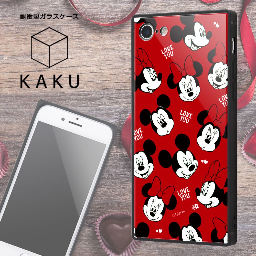 個性的な四角いフォルムと、衝撃に強いTPU素材、鉛筆硬度9Hで傷に強いガラスを背面をセットにした iPhone SE(第2世代)/8/7用 耐衝撃ガラスケース KAKU 。端末側面保護、衝撃吸収エアクッション付き。背面ガラスには『ディズニーキャラクター』のデザインがプリントされ、スマートフォンを鮮やかに彩ります。キャラクター名: ミッキーマウス ( ミッキー )/ ミニーマウス ( ミニー )※本製品に端末本体は付属致しません。
