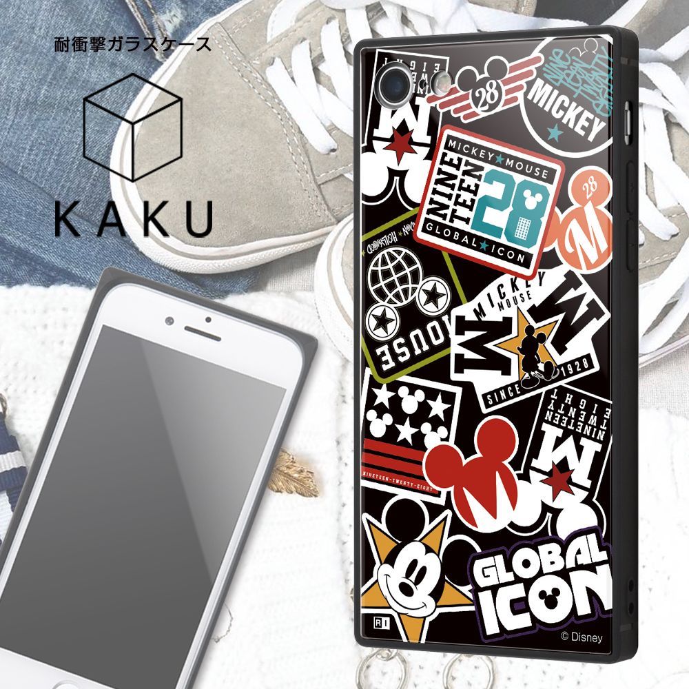 個性的な四角いフォルムと、衝撃に強いTPU素材、鉛筆硬度9Hで傷に強いガラスを背面をセットにした iPhone SE(第2世代)/8/7用 耐衝撃ガラスケース KAKU 。端末側面保護、衝撃吸収エアクッション付き。背面ガラスには『ディズニーキャラクター』のデザインがプリントされ、スマートフォンを鮮やかに彩ります。キャラクター名: ミッキーマウス ( ミッキー )※本製品に端末本体は付属致しません。