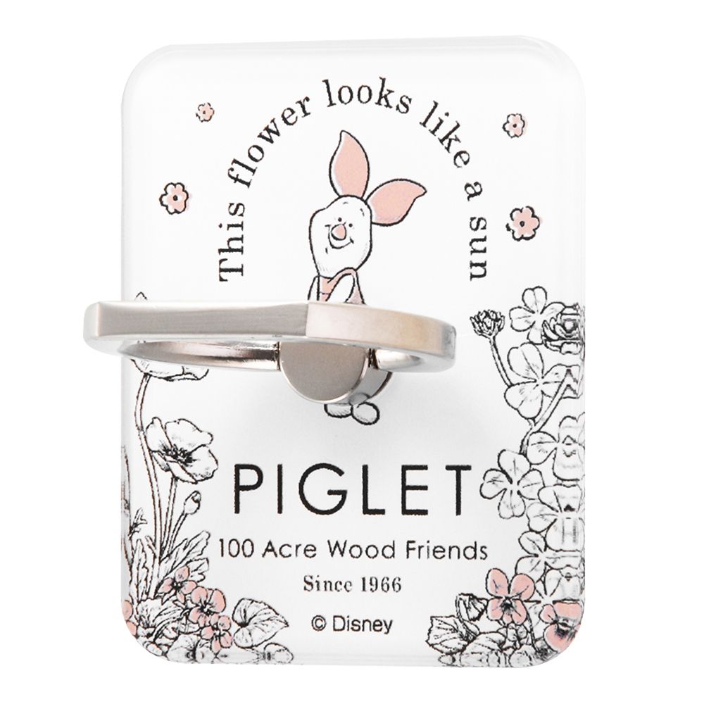 『くまのプーさん』のデザインが施されたスマートフォン用リング。吸着強度が強いのでスマートフォンの操作中の落下を防止します。リングの角度を調整可能なので、縦でも横でも操作可能、スタンド機能としても利用できます。キャラクター名: ピクレット※本製品に端末本体は付属致しません。
