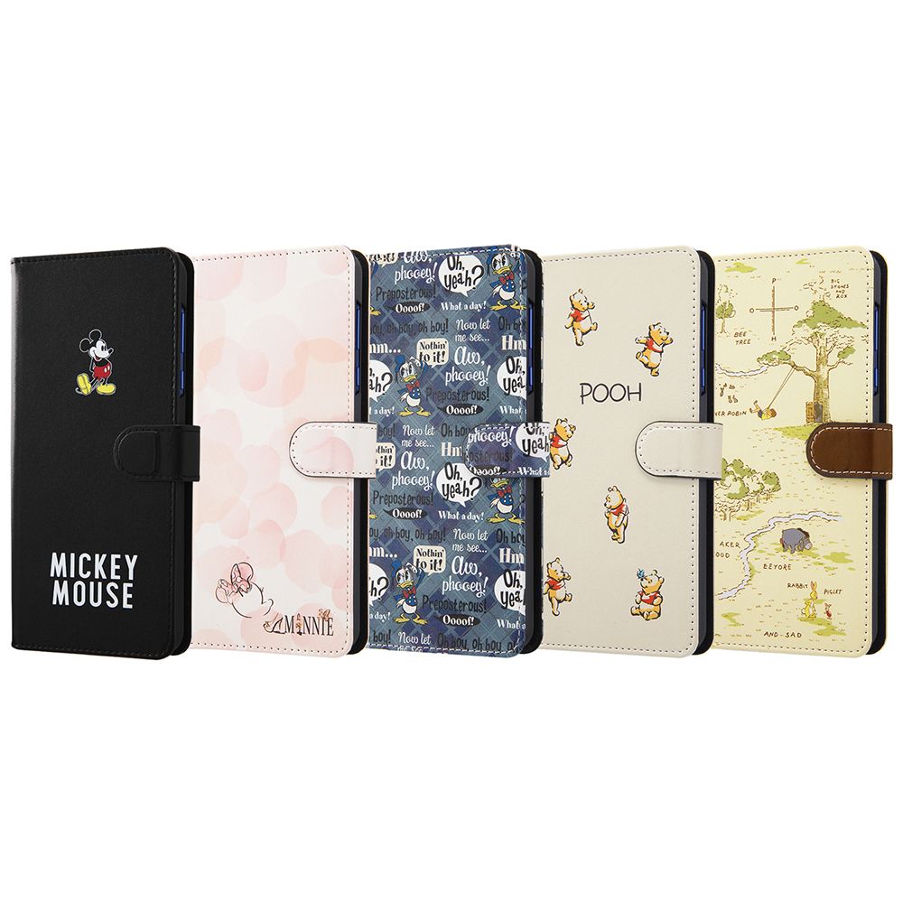 ディズニーキャラクターのアートデザインが全面にプリントされたマグネット付きレザーケース。マグネット式なのでケースの開閉が簡単に行える。お好きなカードが入れられるICカードポケット付き。カードやレシートなども入れられる大きめの収納ポケット付き。。
