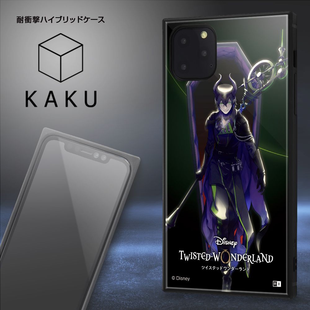 個性的な四角いフォルムと、衝撃に強いTPU素材の側面、薄くて軽く透明度の高いアクリルパネル を背面にセットした iPhone 11 Pro Max用 耐衝撃ケース KAKUハイブリッド。端末側面保護、衝撃吸収エアクッション付き。背面パネルには『ツイステッドワンダーランド』のデザインがプリントされ、スマートフォンを鮮やかに彩ります。キャラクター名: ヴィル・シェンハイト ( ヴィル 寮長 )※本製品に端末本体は付属致しません。