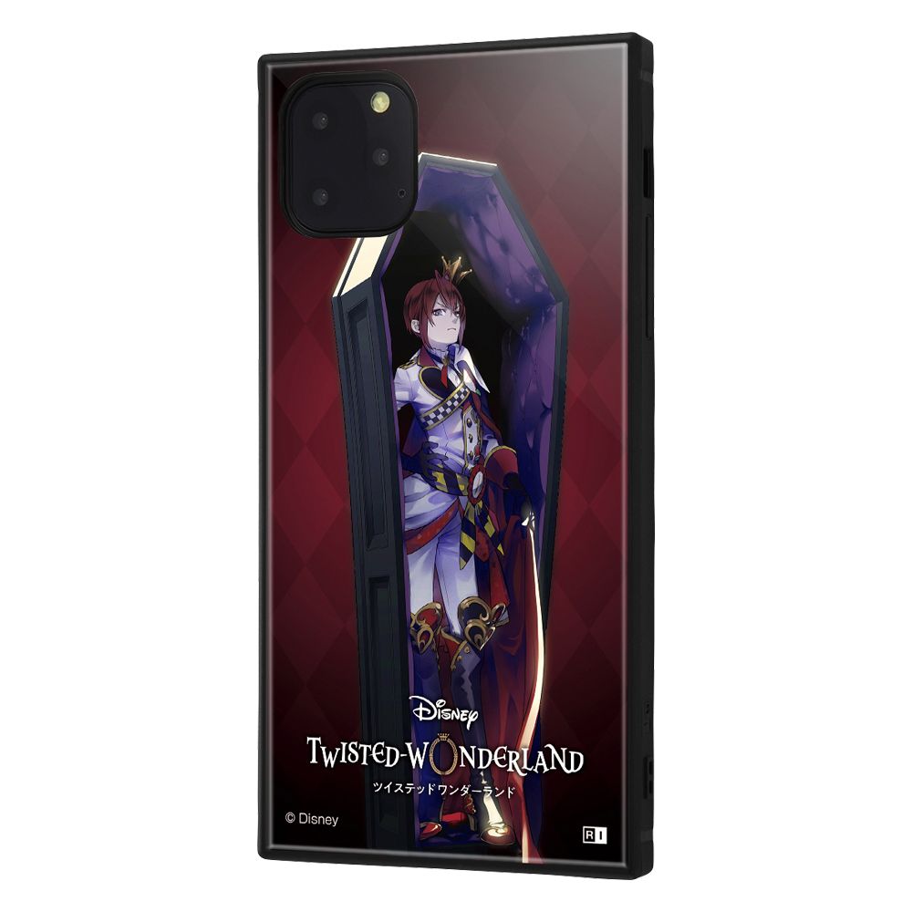 個性的な四角いフォルムと、衝撃に強いTPU素材の側面、薄くて軽く透明度の高いアクリルパネル を背面にセットした iPhone 11 Pro Max用 耐衝撃ケース KAKUハイブリッド。端末側面保護、衝撃吸収エアクッション付き。背面パネルには『ツイステッドワンダーランド』のデザインがプリントされ、スマートフォンを鮮やかに彩ります。キャラクター名: リドル・ローズハート ( リドル 寮長 )※本製品に端末本体は付属致しません。