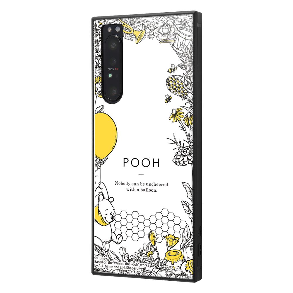 個性的な四角いフォルムと、衝撃に強いTPU素材の側面、薄くて軽く透明度の高いアクリルパネル を背面にセットした Xperia 1 II用 耐衝撃ケース KAKUハイブリッド。端末側面保護、衝撃吸収エアクッション付き。背面パネルには『くまのプーさん』のデザインがプリントされ、スマートフォンを鮮やかに彩ります。キャラクター名: プーさん ( プー )※本製品に端末本体は付属致しません。