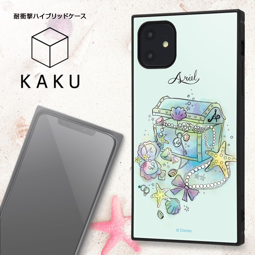 個性的な四角いフォルムと、衝撃に強いTPU素材の側面、薄くて軽く透明度の高いアクリルパネル を背面にセットした iPhone 2019年秋モデル 6.1inch用 耐衝撃ケース KAKUハイブリッド。端末側面保護、衝撃吸収エアクッション付き。背面パネルには『ディズニープリンセス』のデザインがプリントされ、スマートフォンを鮮やかに彩ります。キャラクター名: シンデレラ※本製品に端末本体は付属致しません