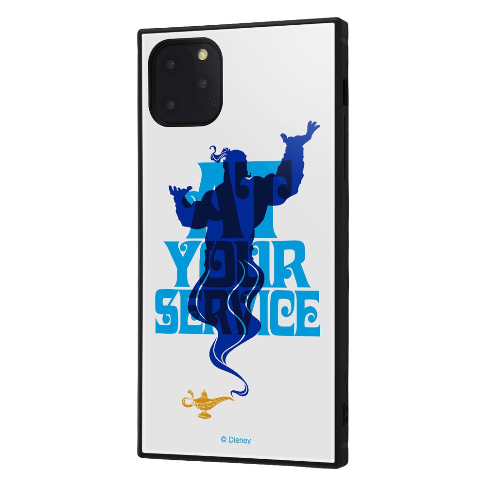 個性的な四角いフォルムと、衝撃に強いTPU素材の側面、薄くて軽く透明度の高いアクリルパネル を背面にセットした iPhone 2019年秋モデル 6.5inch用 耐衝撃ケース KAKUハイブリッド。端末側面保護、衝撃吸収エアクッション付き。背面パネルには『アラジン』のデザインがプリントされ、スマートフォンを鮮やかに彩ります。キャラクター名: ジーニー※本製品に端末本体は付属致しません