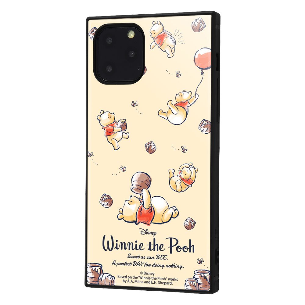 個性的な四角いフォルムと、衝撃に強いTPU素材の側面、薄くて軽く透明度の高いアクリルパネル を背面にセットした iPhone 2019年秋モデル 5.8inch用 耐衝撃ケース KAKUハイブリッド。端末側面保護、衝撃吸収エアクッション付き。背面パネルには『くまのプーさん』のデザインがプリントされ、スマートフォンを鮮やかに彩ります。キャラクター名: プーさん ( プー )※本製品に端末本体は付属致しません