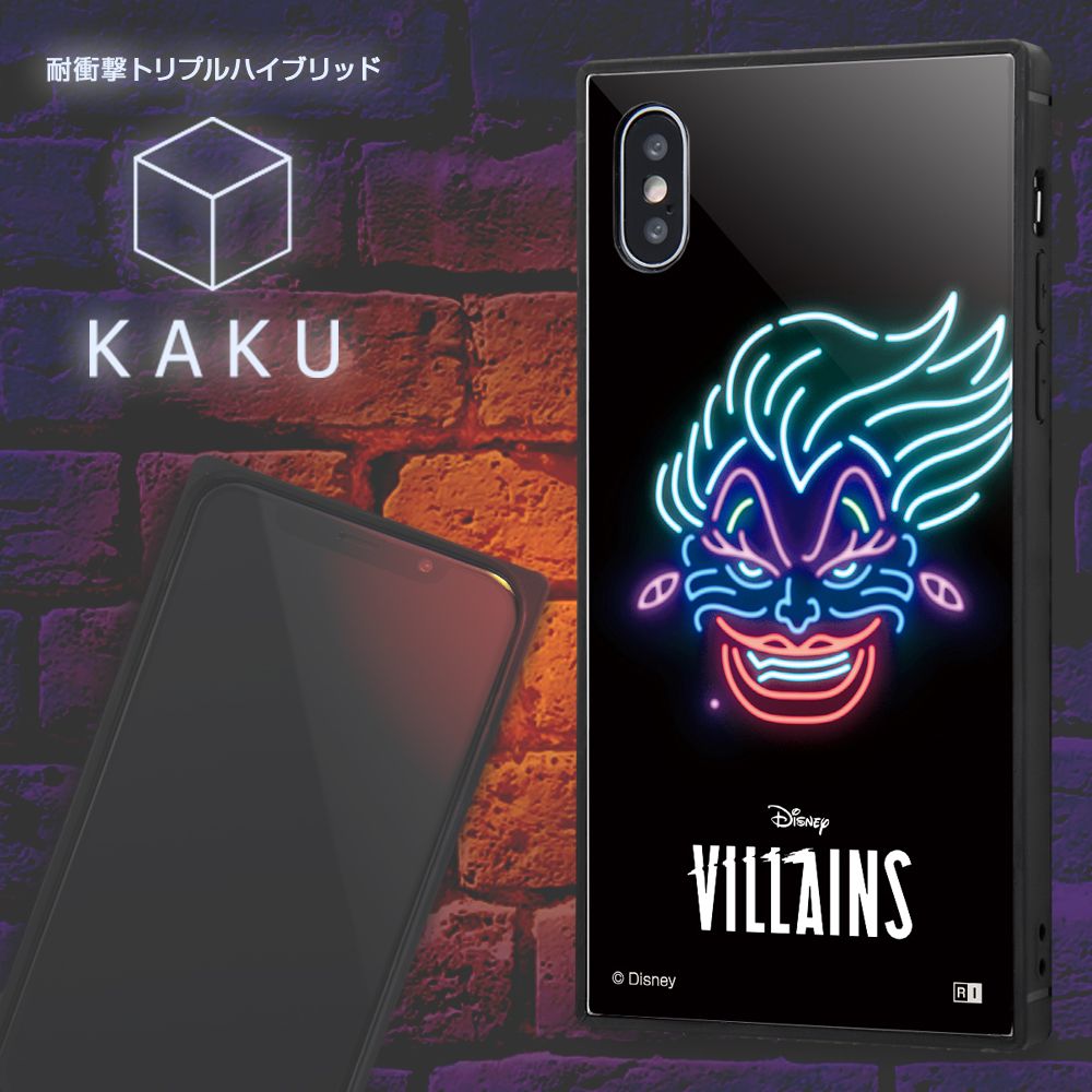 個性的な四角いフォルムと、衝撃に強いTPU素材の側面、薄くて軽く透明度の高いアクリルパネル を背面にセットした iPhone XS / X用 耐衝撃ケース KAKU トリプルハイブリッド。端末側面保護、衝撃吸収エアクッション付き。背面パネルには『ディズニーキャラクター』のデザインがプリントされ、スマートフォンを鮮やかに彩ります。キャラクター名: アースラ※本製品に端末本体は付属致しません