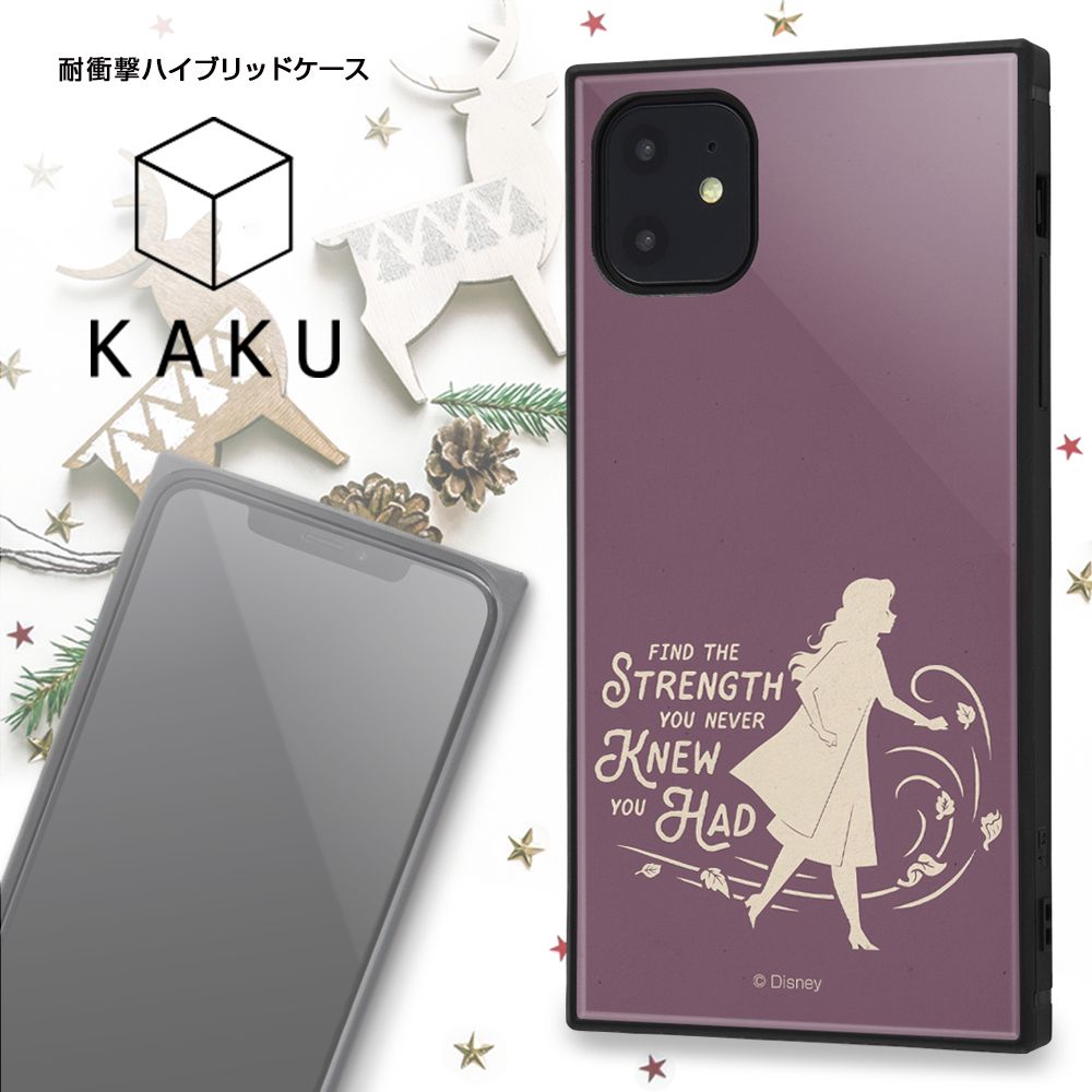 個性的な四角いフォルムと、衝撃に強いTPU素材の側面、薄くて軽く透明度の高いアクリルパネル を背面にセットした iPhone 11/XR用 耐衝撃ケース KAKUハイブリッド。端末側面保護、衝撃吸収エアクッション付き。背面パネルには『アナと雪の女王』のデザインがプリントされ、スマートフォンを鮮やかに彩ります。キャラクター名: アナ※本製品に端末本体は付属致しません