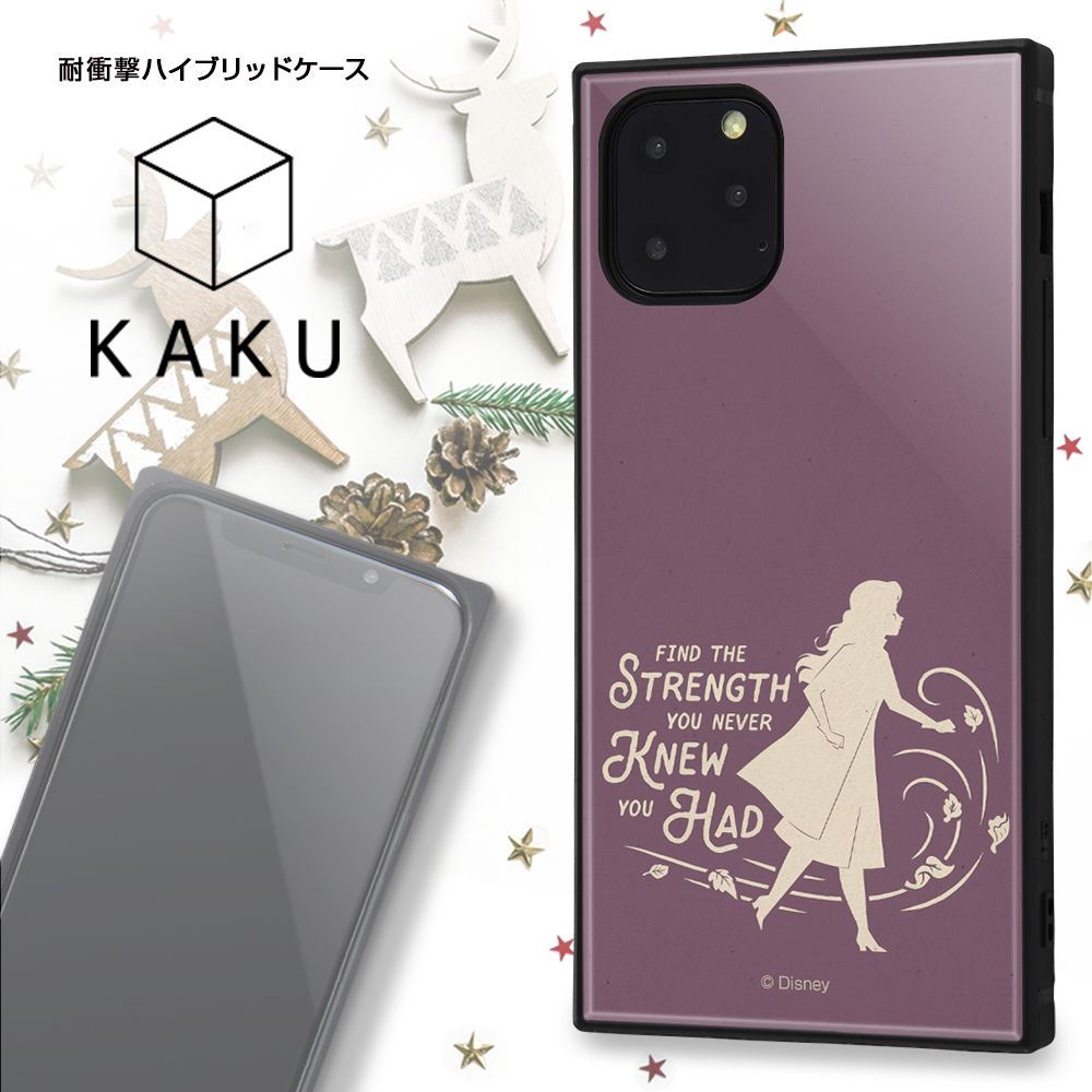 個性的な四角いフォルムと、衝撃に強いTPU素材の側面、薄くて軽く透明度の高いアクリルパネル を背面にセットした iPhone 11 Pro /用 耐衝撃ケース KAKUハイブリッド。端末側面保護、衝撃吸収エアクッション付き。背面パネルには『アナと雪の女王』のデザインがプリントされ、スマートフォンを鮮やかに彩ります。キャラクター名: アナ※本製品に端末本体は付属致しません