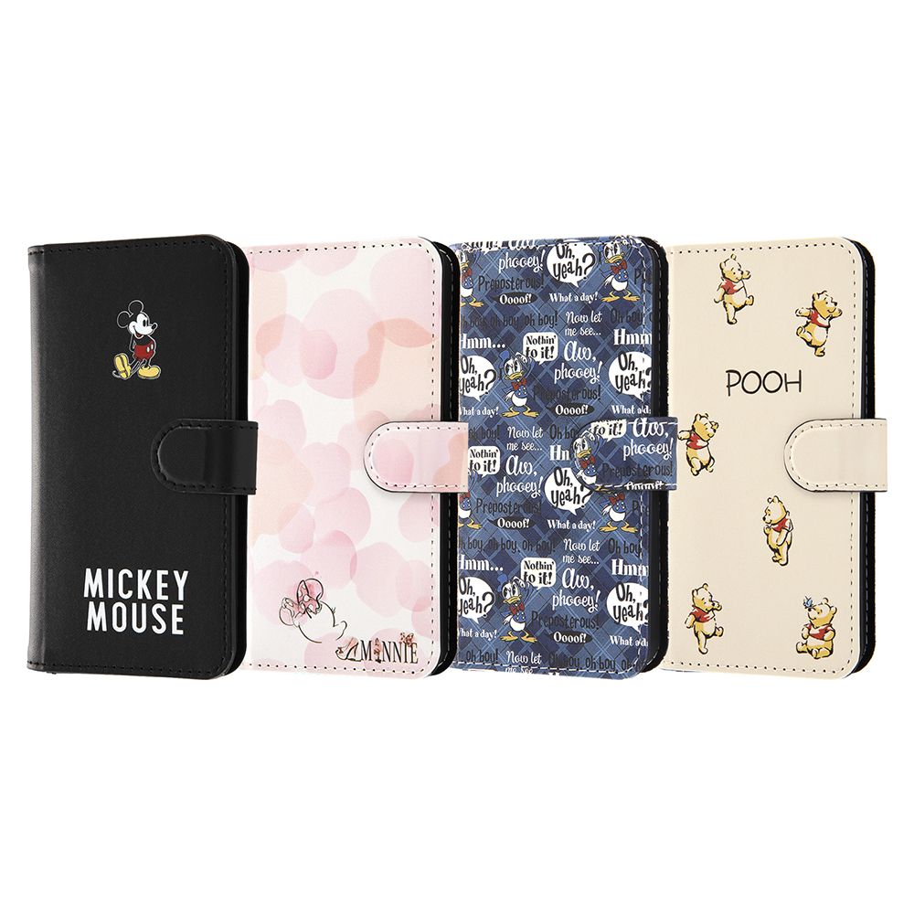 ディズニーキャラクターのアートデザインが全面にプリントされたマグネット付きレザーケース。マグネット式なのでケースの開閉が簡単に行える。お好きなカードが入れられるICカードポケット付き。カードやレシートなども入れられる大きめの収納ポケット付き。四つ角エアクッション付。