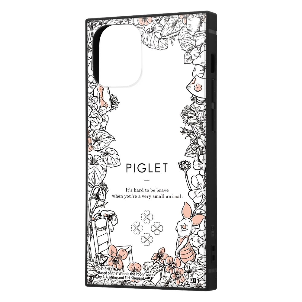 個性的な四角いフォルムと、衝撃に強いTPU素材の側面、薄くて軽いアクリルパネル を背面にセットした iPhone 12 mini用 耐衝撃ケース KAKUハイブリッド。端末側面保護、衝撃吸収エアクッション付。背面パネルには『くまのプーさん』のデザインがプリントされ、スマートフォンを鮮やかに彩ります。キャラクター名: ピグレット※本製品に端末本体は付属致しません