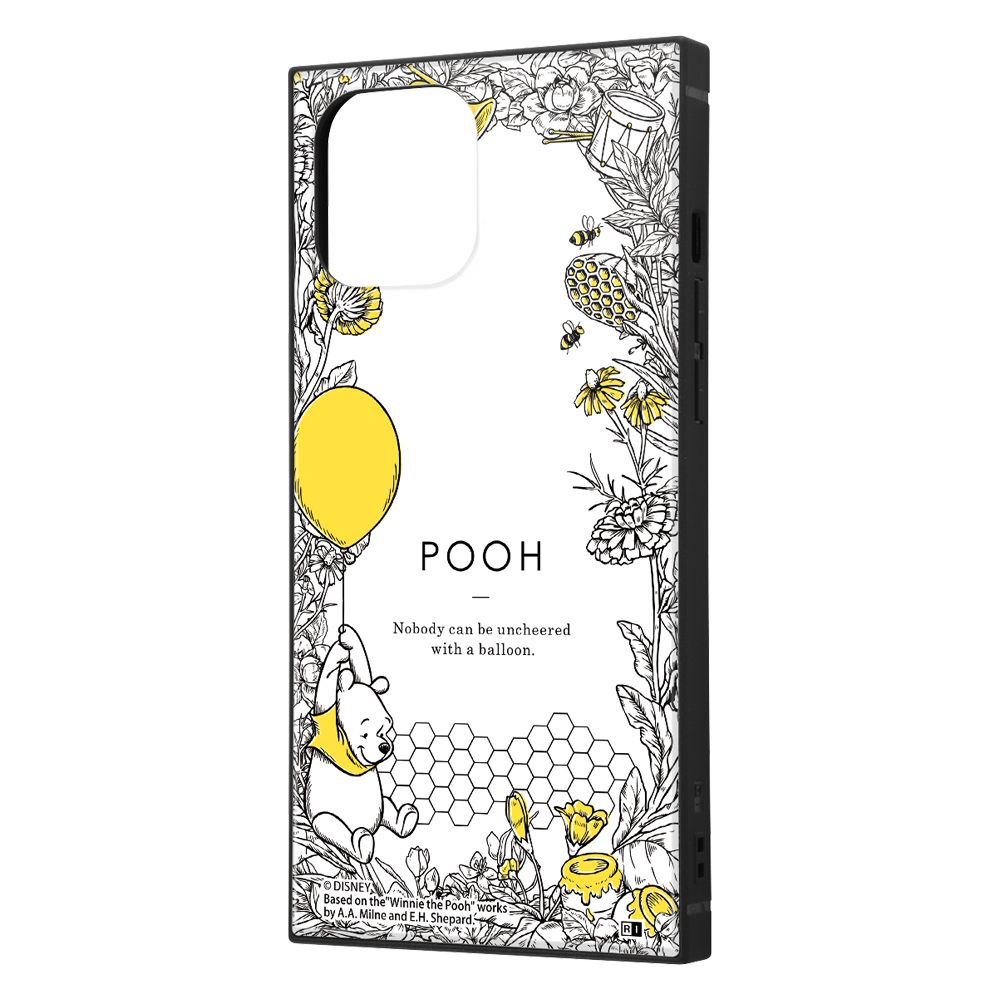 個性的な四角いフォルムと、衝撃に強いTPU素材の側面、薄くて軽いアクリルパネル を背面にセットした iPhone 12 Pro Max用 耐衝撃ケース KAKUハイブリッド。端末側面保護、衝撃吸収エアクッション付。背面パネルには『くまのプーさん』のデザインがプリントされ、スマートフォンを鮮やかに彩ります。キャラクター名: プーさん ( プー )※本製品に端末本体は付属致しません