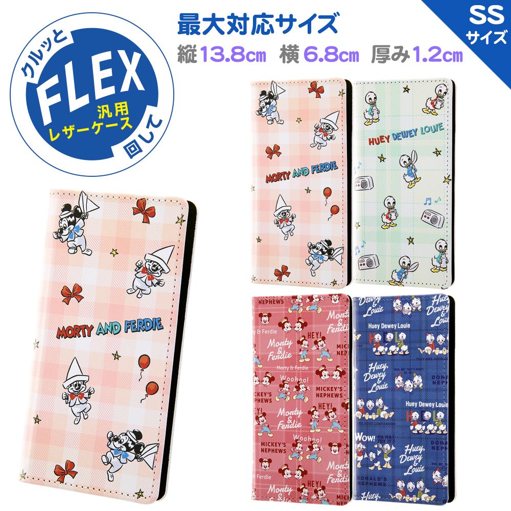 『ディズニーキャラクター』のデザインが施された多機能対応スマートフォンケース。クルッと回して簡単にいろいろな使い方ができます。大きなカメラレンズにも対応しているから機種を選びません。最大対応サイズは、たて約138mmよこ約68mm厚み約12mm。キャラクター名: モーティー / フェルディ