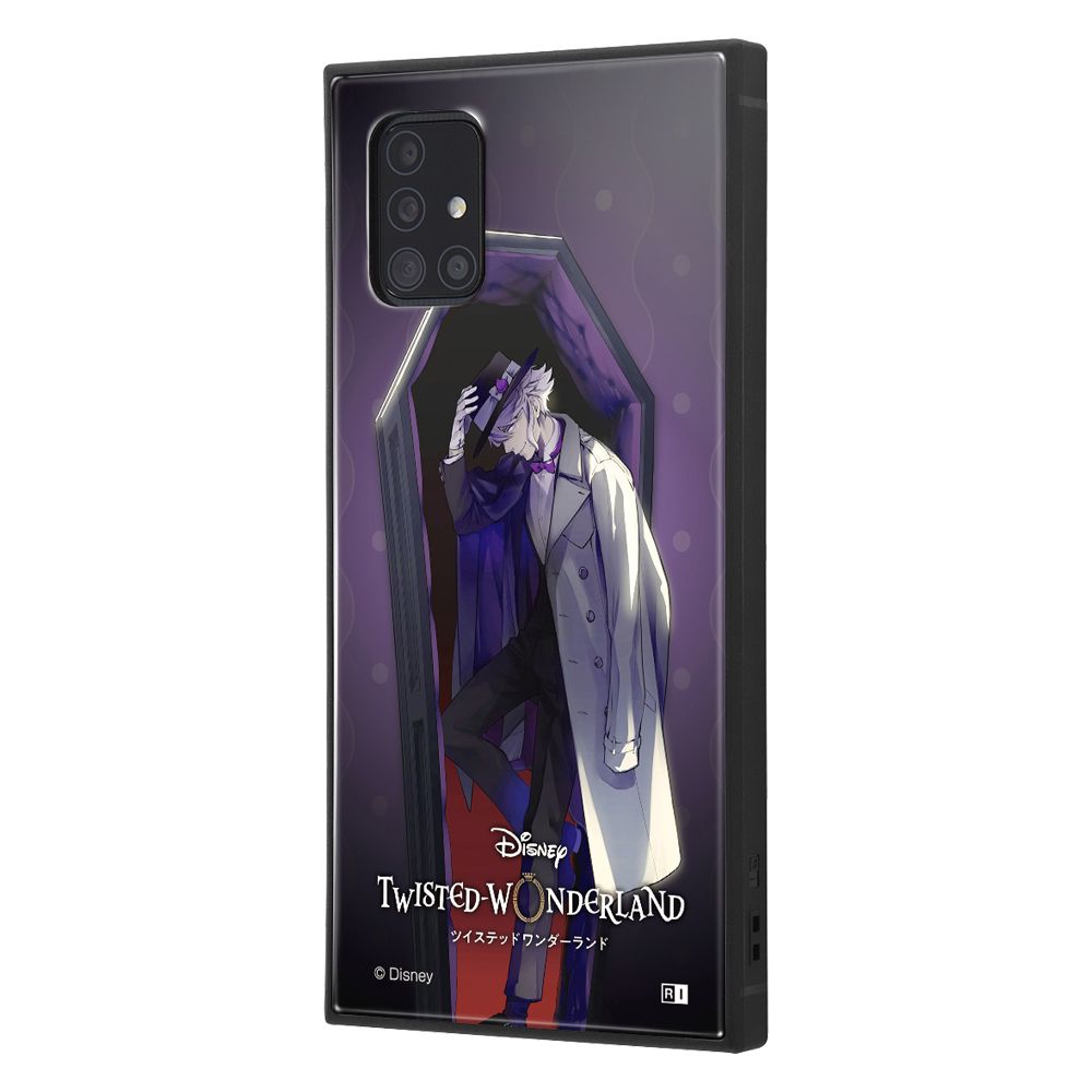 個性的な四角いフォルムと、衝撃に強いTPU素材の側面、薄くて軽く透明度の高いアクリルパネル を背面にセットした Galaxy A51 5G用 耐衝撃ケース KAKUハイブリッド。端末側面保護、衝撃吸収エアクッション付。背面パネルには『ツイステッドワンダーランド』のデザインがプリントされ、スマートフォンを鮮やかに彩ります。キャラクター名: アズール・アーシェングロット ( アズール 寮長 )※本製品に端末本体は付属致しません