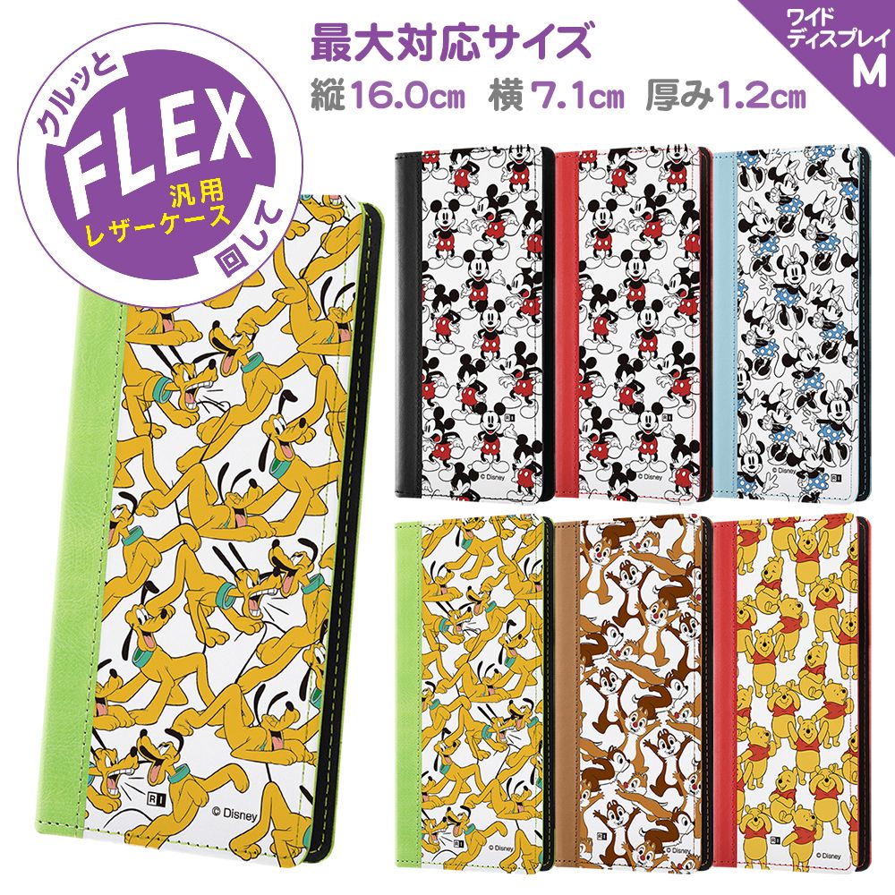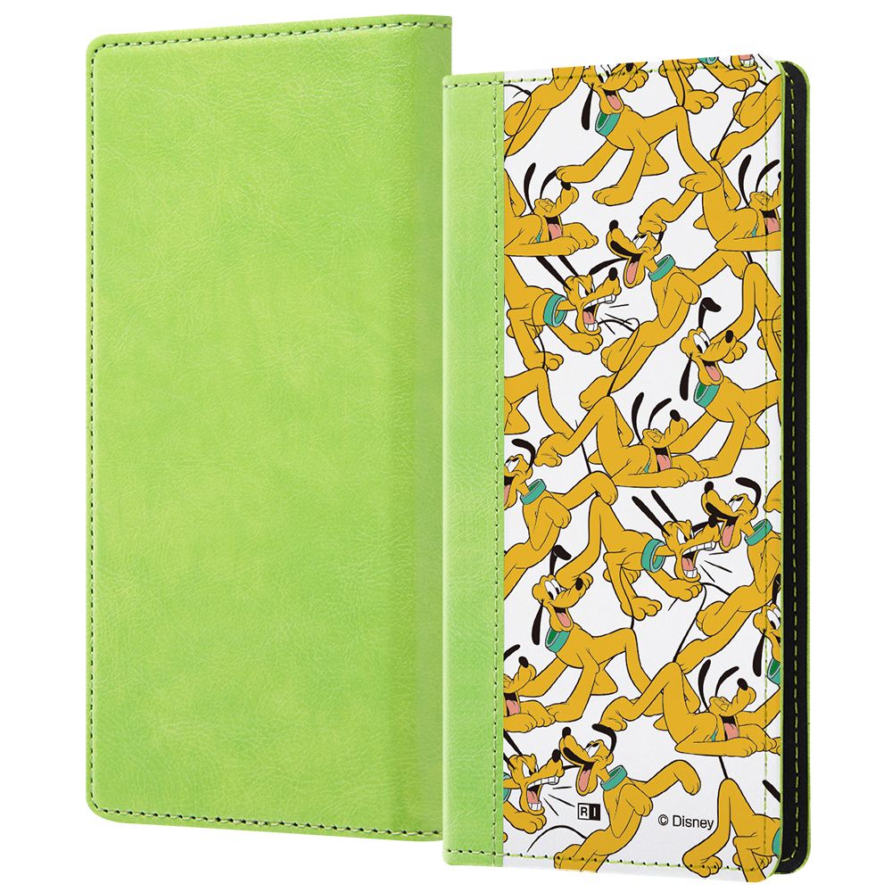 『ディズニーキャラクター』のデザインが印刷された発色の良い白いレザーとパステルカラーのレザーを組み合わせた多機能対応スマートフォンケース。クルッと回して簡単にいろいろな使い方ができます。大きなカメラレンズにも対応しているから機種を選びません。最大対応サイズは、たて約160mmよこ約71mm厚み約12mm。キャラクター名: プルート