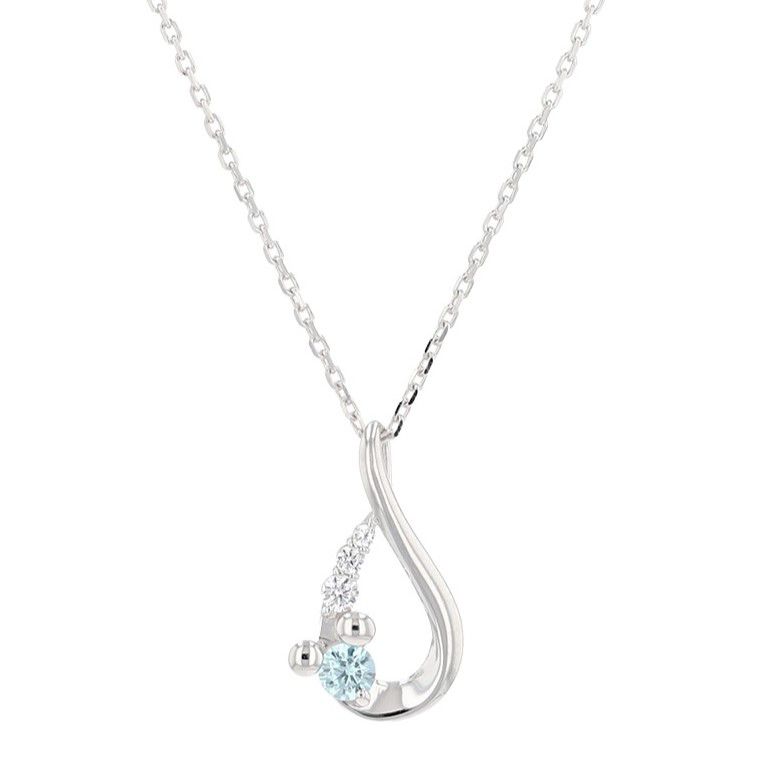 すっきりとしたデザインと明るいブルーのキュービックジルコニアで軽やかにお使いできるペンダントは普段使いに最適。