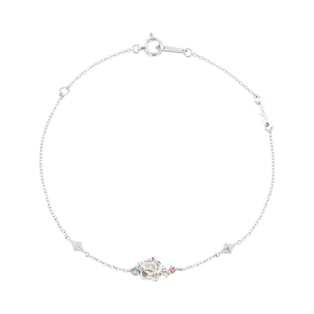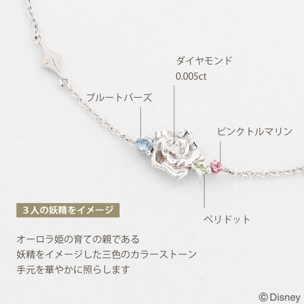 大人の女性に相応しい薔薇モチーフ。寄り添うようにセットされた3色のカラーストーンには3人の妖精をイメージしました。