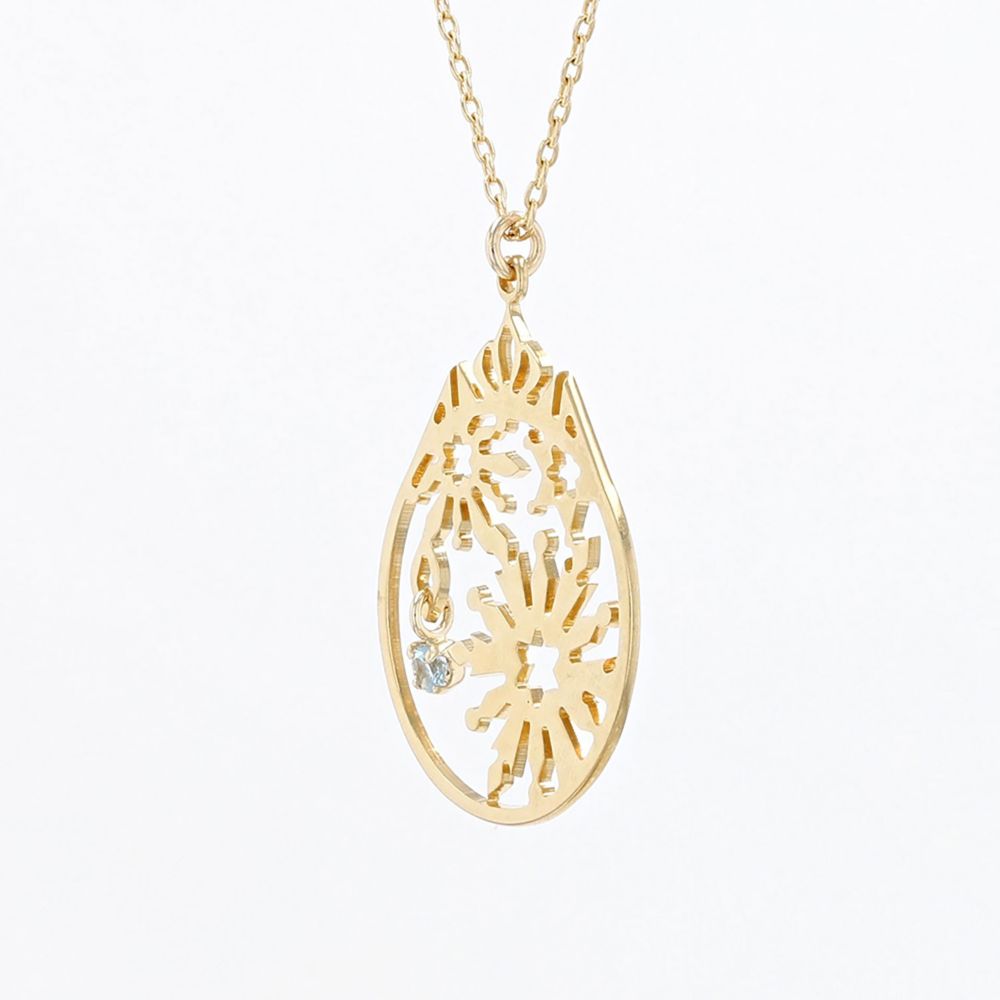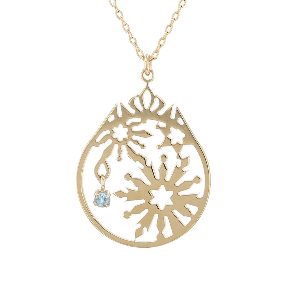 10金イエローゴールドに氷の欠片をイメージしたブルートパーズが揺れ動き