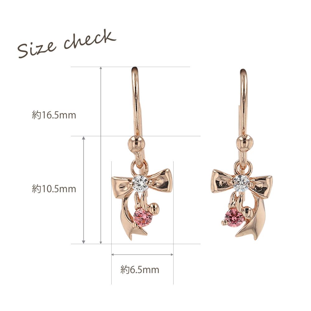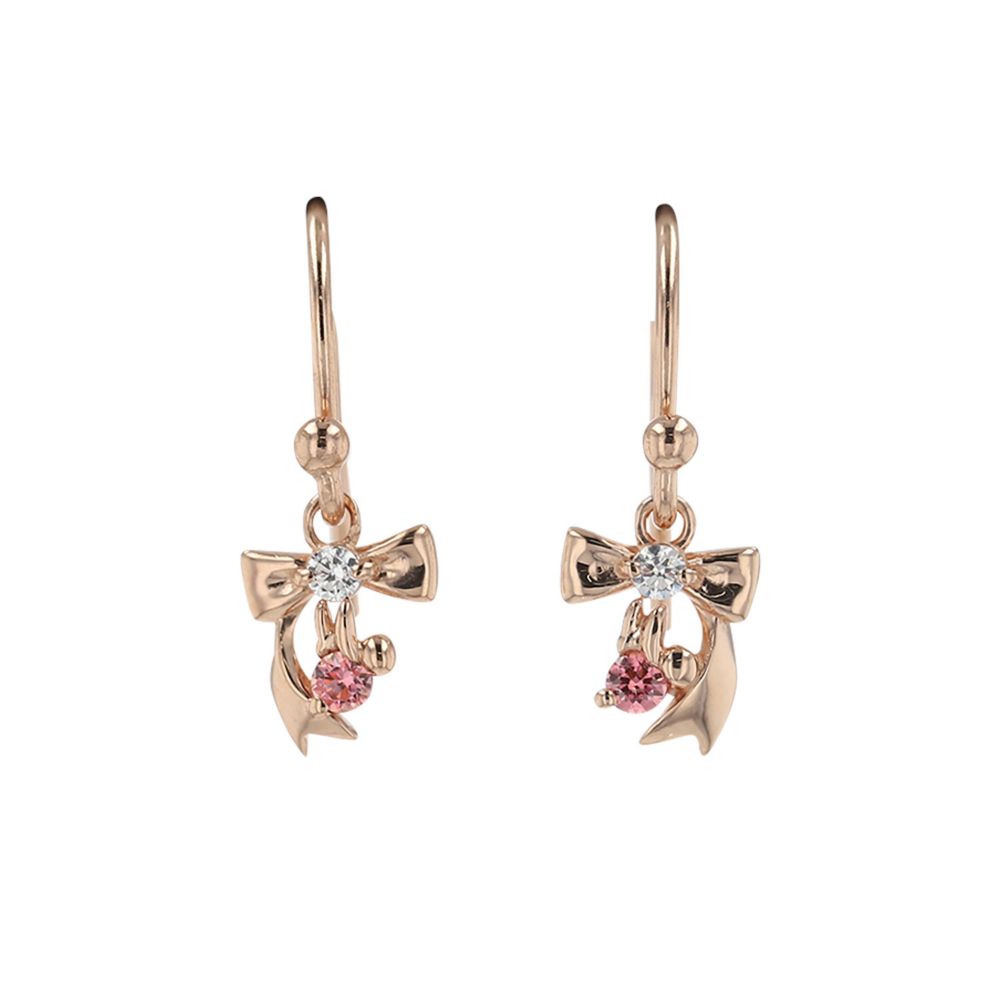 優しいカラーのピンクゴールドコーティングで描かれた小ぶりのリボンピアス