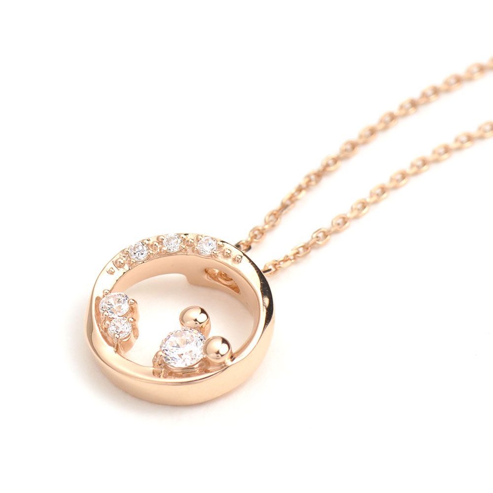 肌馴染みの良いピンクゴールドのカラーが胸元を彩ります。