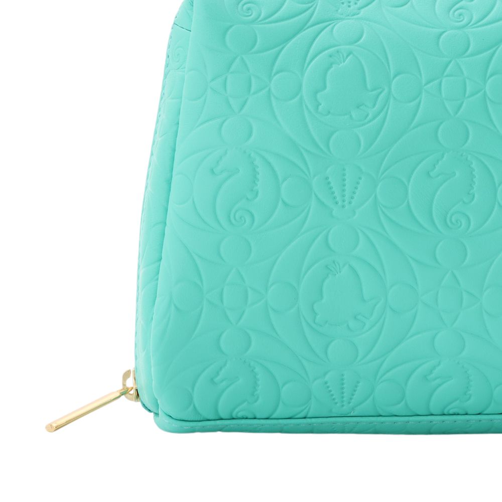 「アリエル」のドレスなどをイメージしたミントグリーンの色をベースに、ディズニープリンセス「アリエル」や『リトル・マーメイド』の作品の世界をポーチ/小物入れに表現しました。