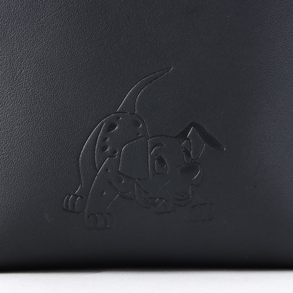 季節を問わず使いやすいマットな質感のブラックに、『101匹わんちゃん』の子犬がこちらを見上げているような表情がキュートなバッグです。